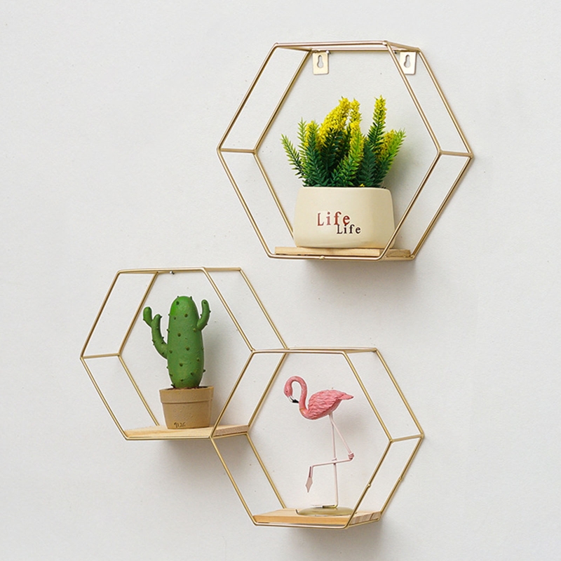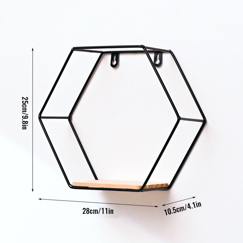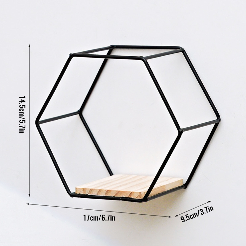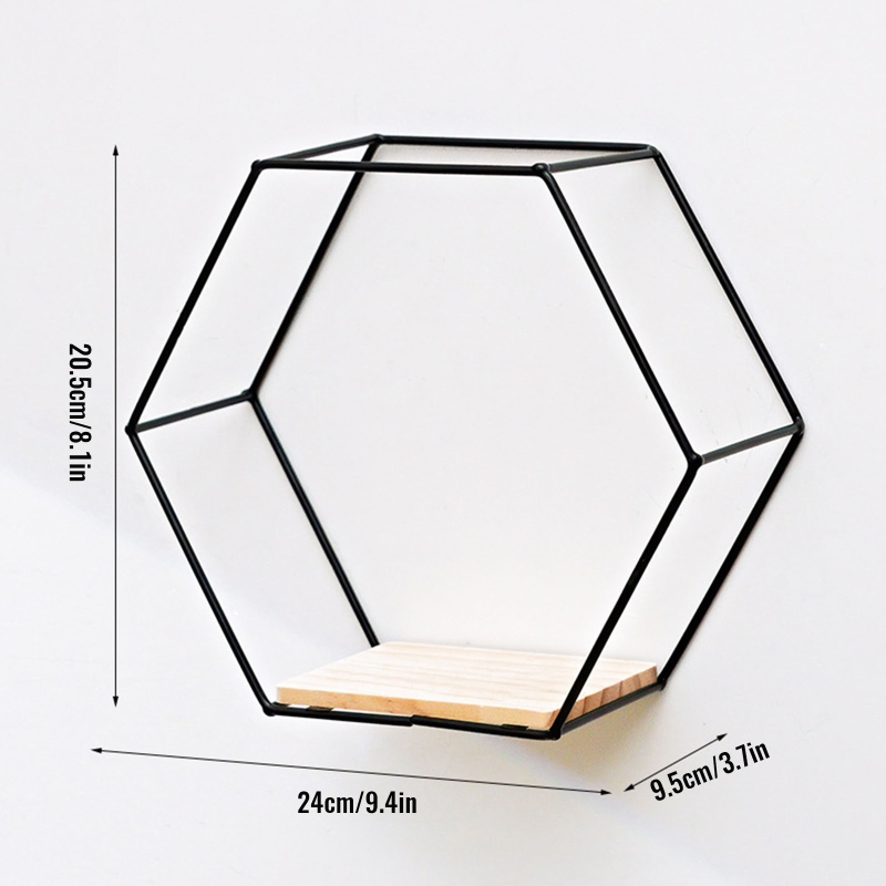 Скандинавский стиль настенный плавающий шестигранный металлический держатель для хранения в рамке с деревянной доской с геометрическим каркасом
