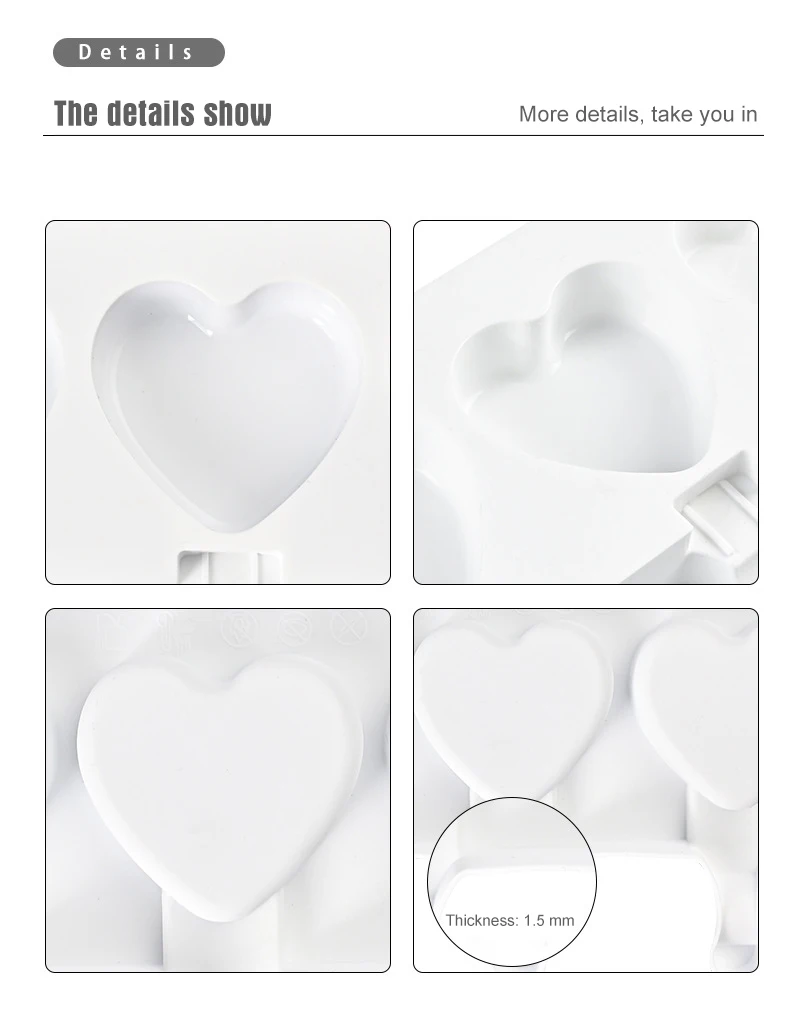 1. [Высококачественный силикагель пищевого класса] форма для Фруктового мороженого изготовлена из высококачественного силикагеля пищевого класса, нетоксичного и безвкусного, многоразового использования, долговечного, легко снимается и моется, И поверхность формы мягкая и гладкая.