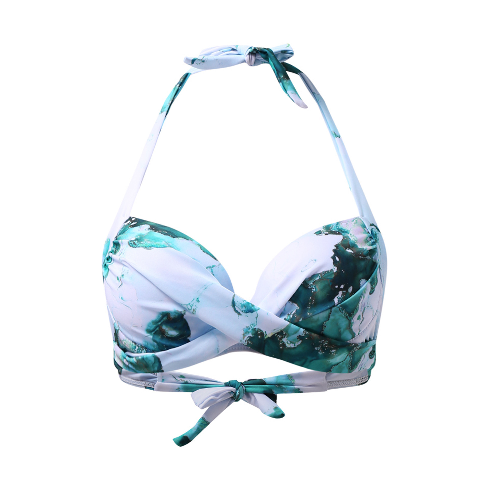Зеленый Топ бикини пуш-ап с регулируемой завязкой на шее и застежкой на крючок на спине, мягкий бюстгальтер пуш-ап обеспечивает максимальную поддержку.