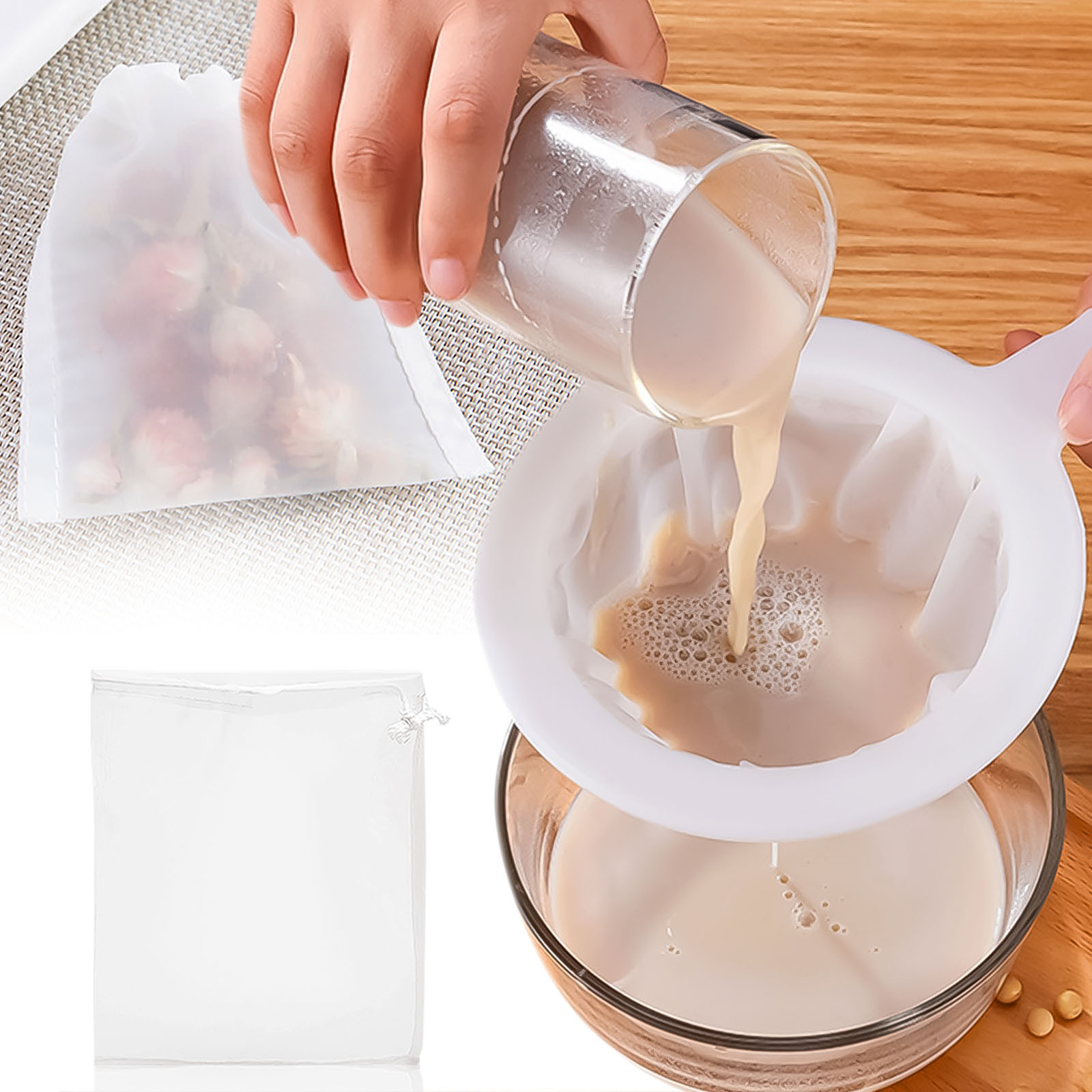 Многократное использование и многоразовое использование: как своего рода фильтр для пищевых продуктов, мешочек орехового молока можно не только использовать для приготовления чая, но и использовать для приготовления холодного кофе, йогурта, сок сельдерея и другие виды соков. Это также пакет для кофе с холодным пивоварением, просто положите кувшин кофе в мешок и погрузите его в банку или кувшин, наполненный чистой водой, затем положите банку в холодильник в течение 12-24 часов, выньте сумку и постирайте ее для следующего использования и наслаждайтесь холодным кофе с пивоварней.