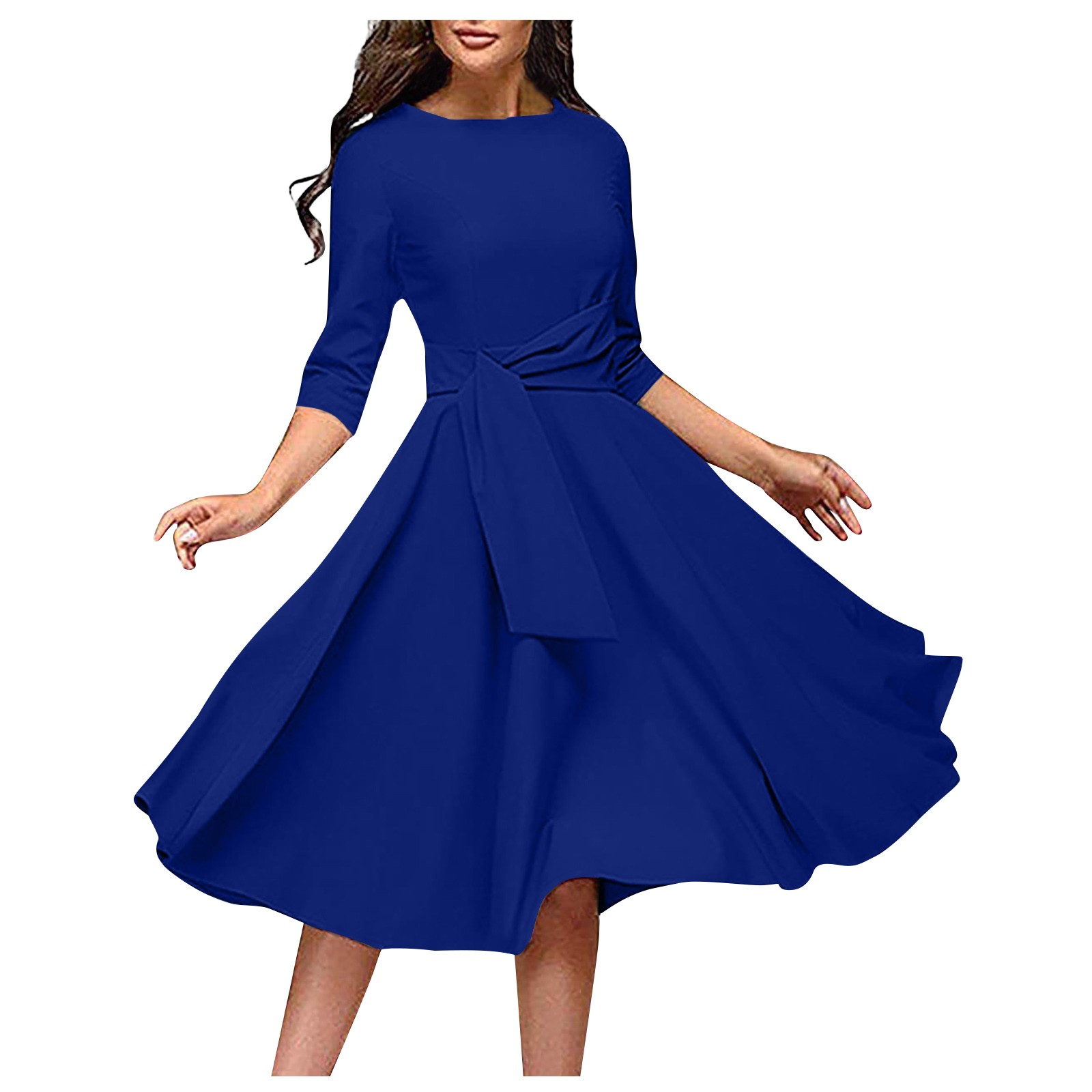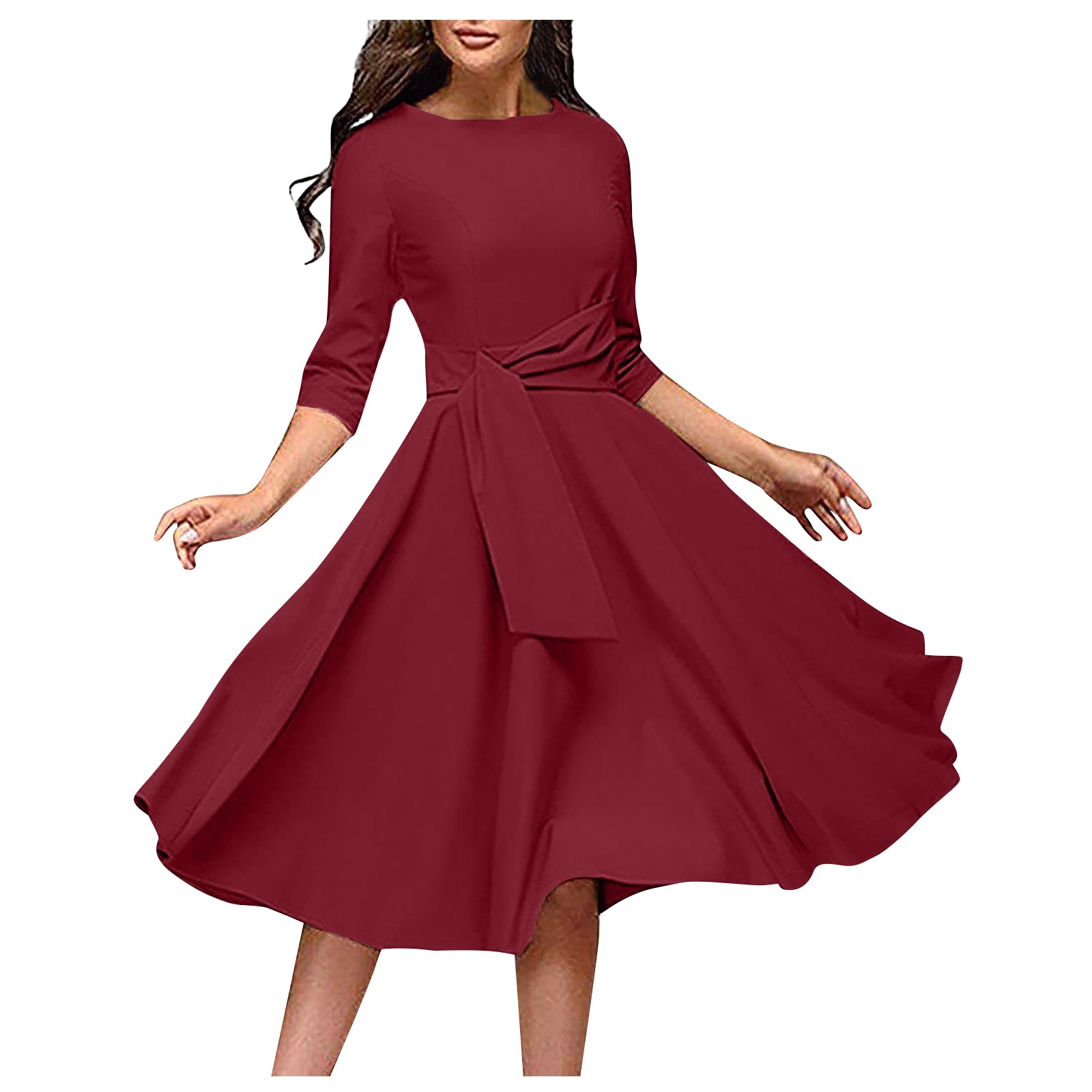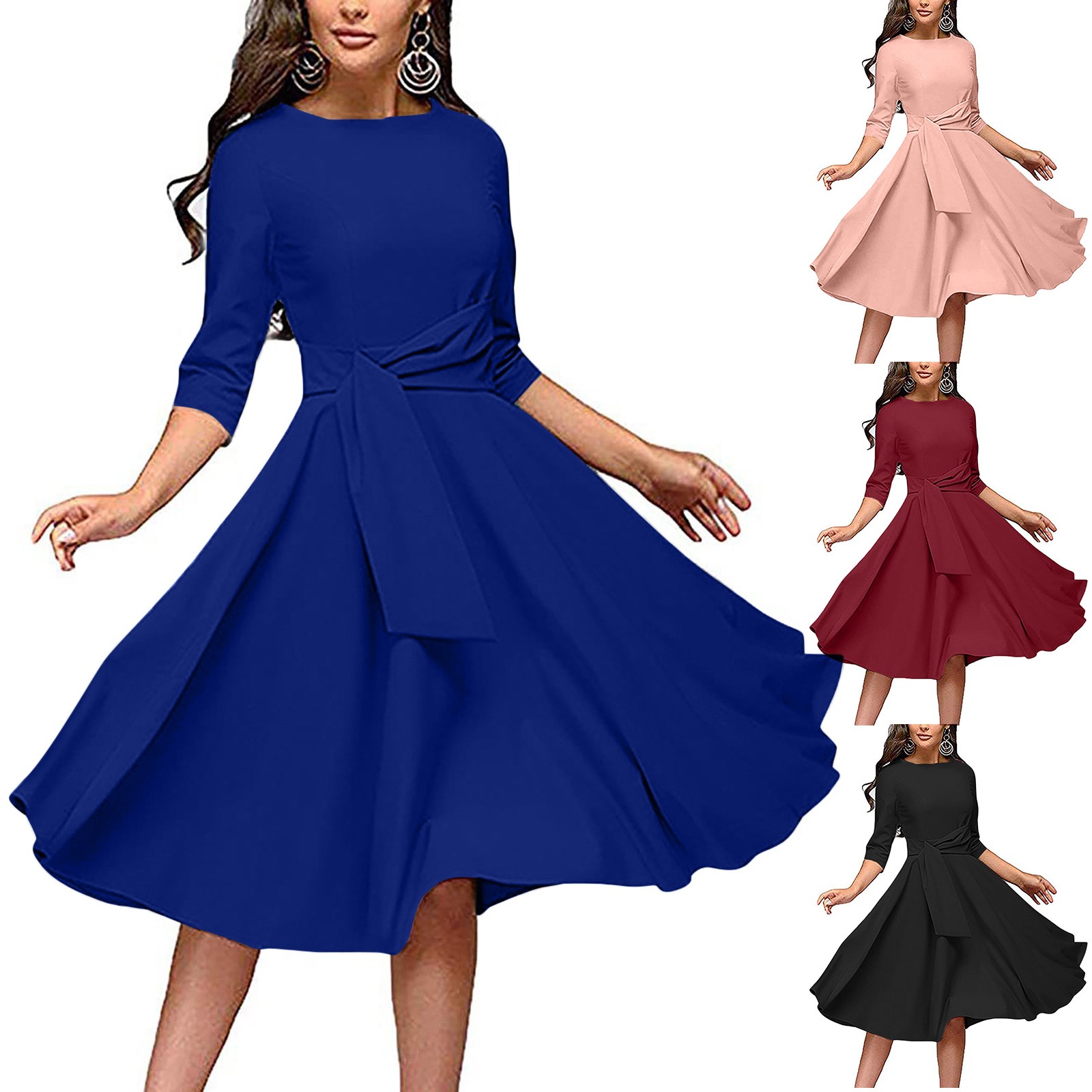 Женское повседневное темпераментное модное однотонное элегантное платье со средней талией
