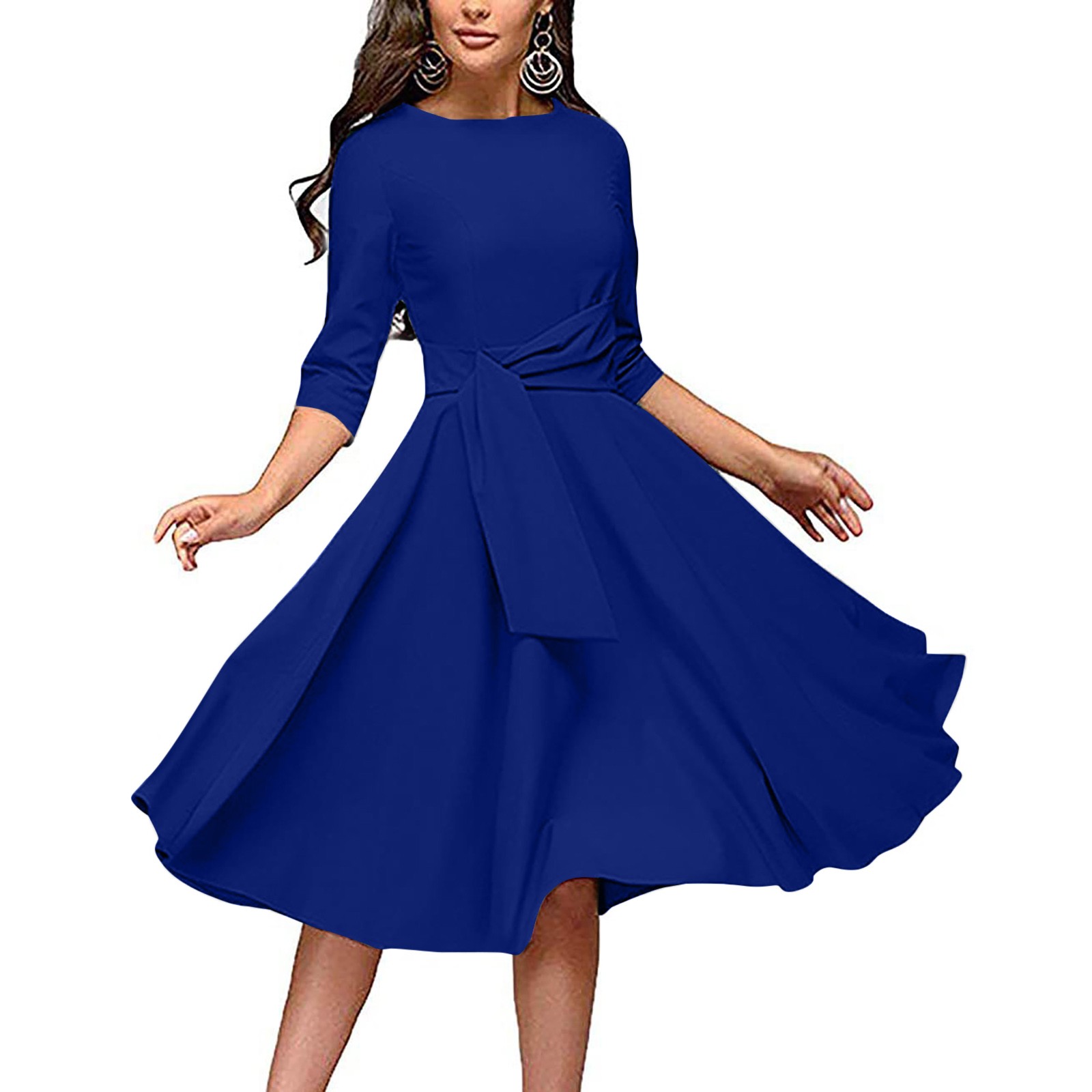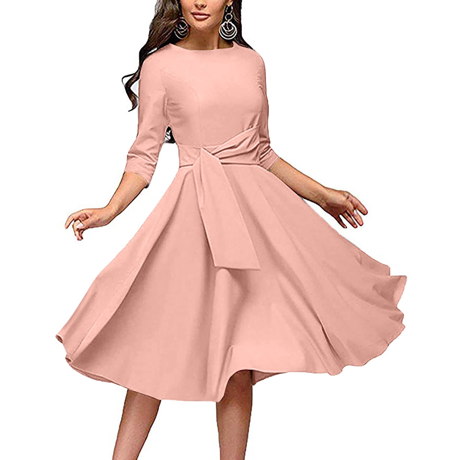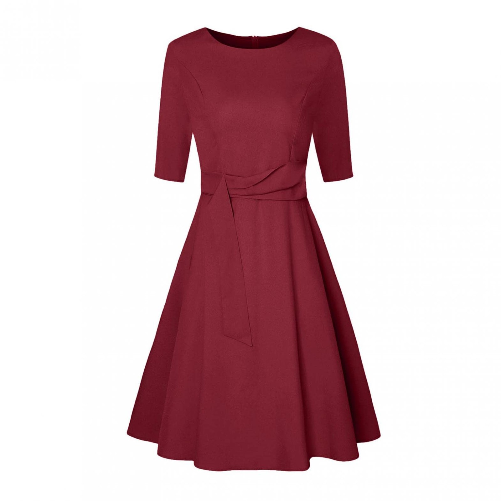 Женское повседневное темпераментное модное однотонное элегантное платье со средней талией