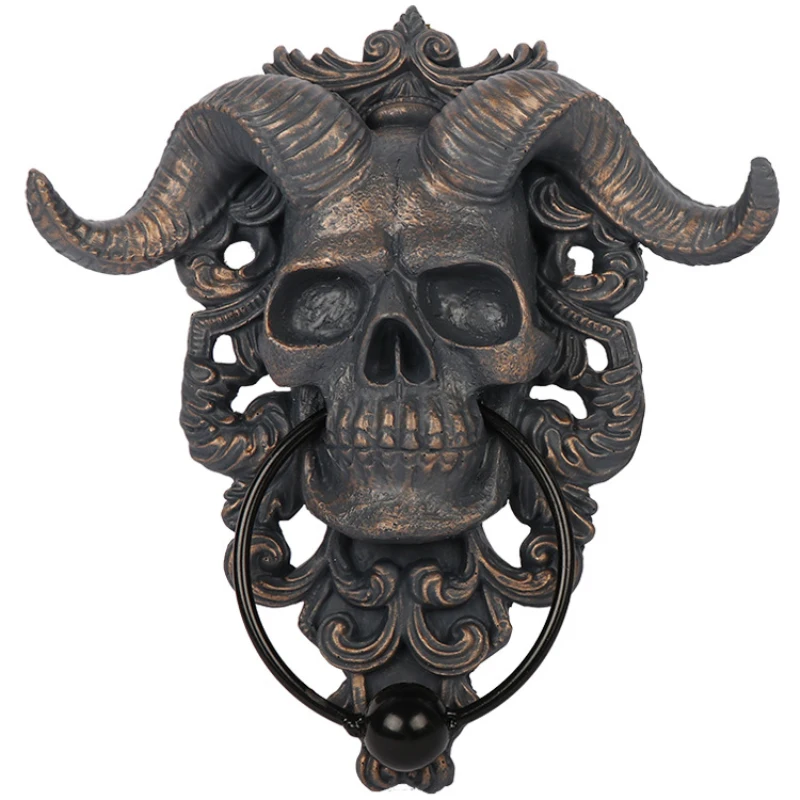 Современное искусство дверное кольцо чертов демон рогатый череп подвесной дверной молоток-сверхмощный Готический дверной молоток-идеальное украшение для дома нокеры