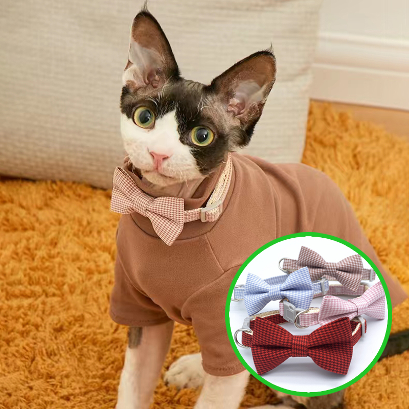 Воротник в клетку с бантом для домашних животных, дизайн с бантом, милый и милый. Дизайн в клетку, модная и простая. Регулируемый размер, удобный и удобный в носке.