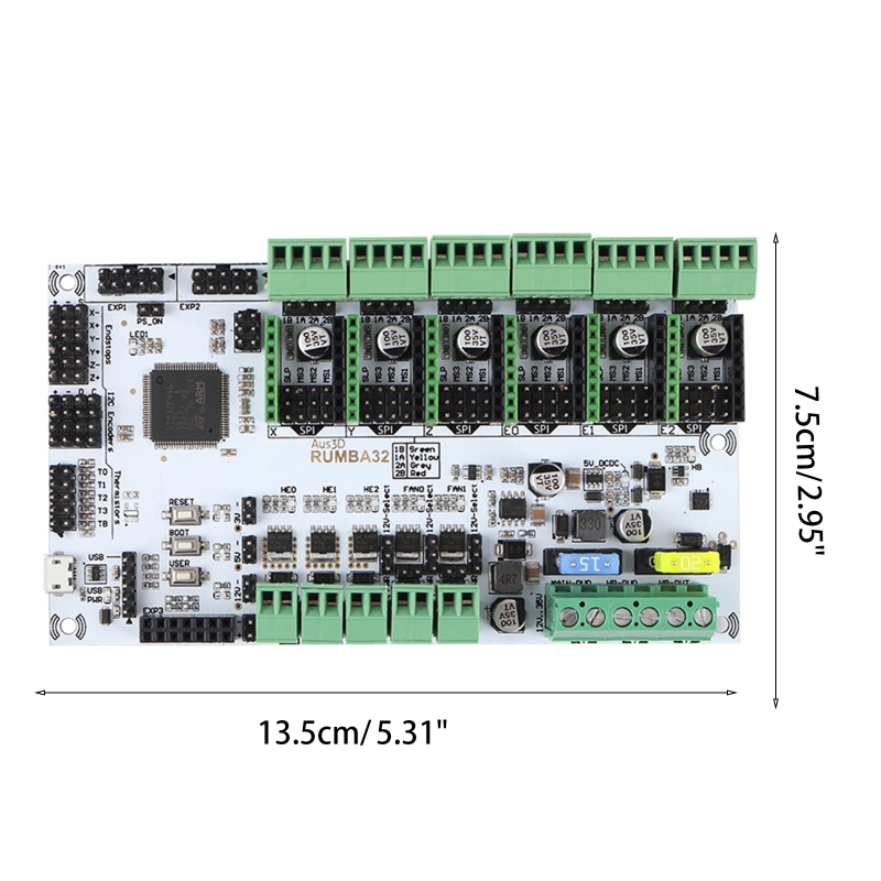 2. RUMBA + аппаратный дизайн принят и обновлен с новым процессором: STM32F446. Он имеет частоту часов 180 МГц, 512кб флэш-памяти и 128Кб SRAM, все из которых построены на высокопроизводительной архитектуре ARM.