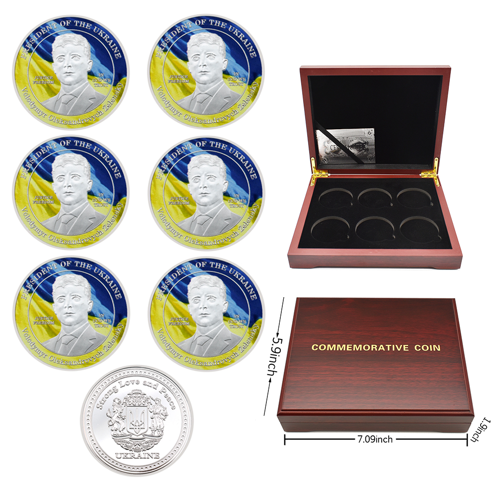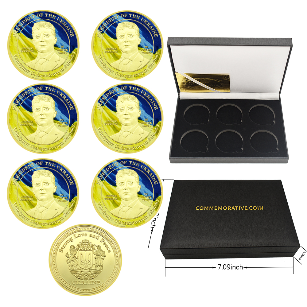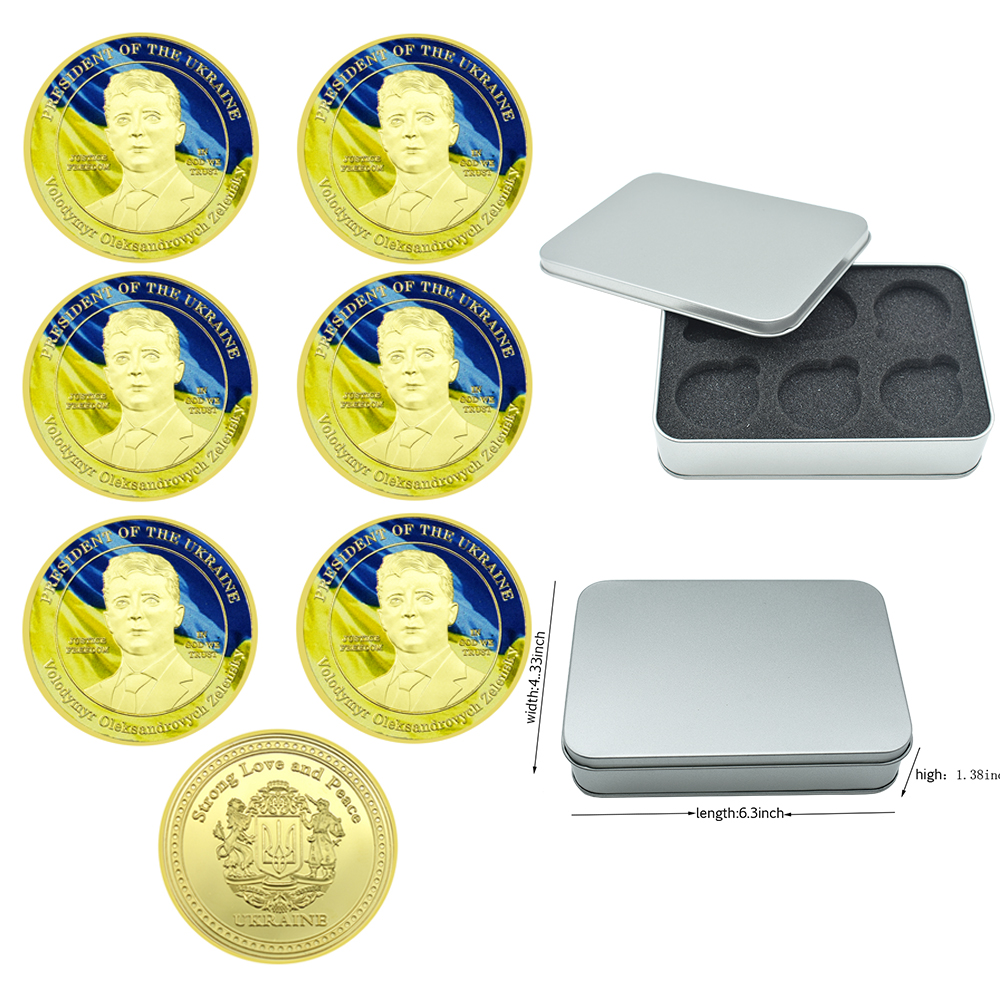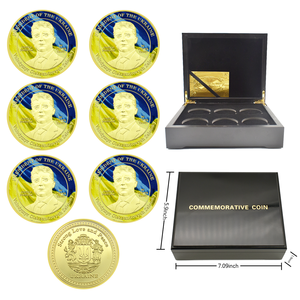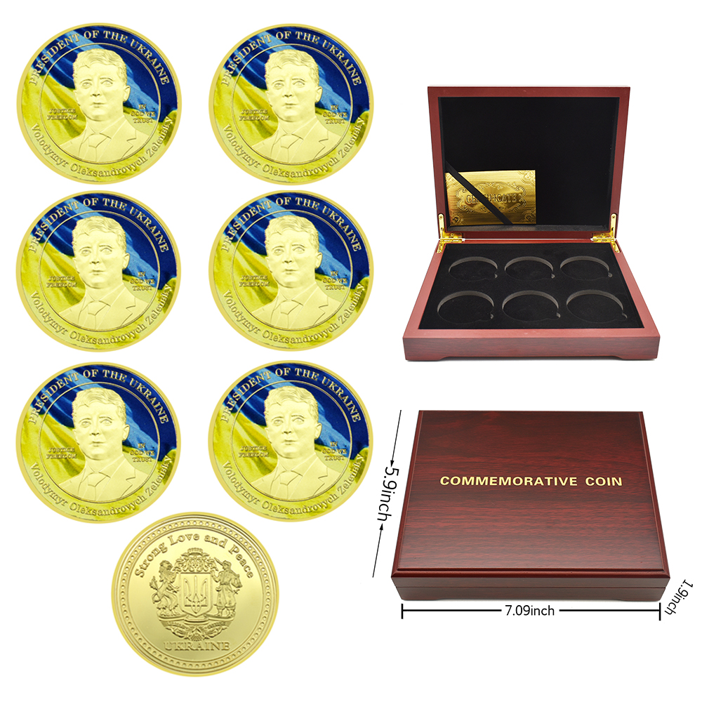 6 шт./кор. зеленский памятная монета деревянный ящик комплект Президента Украины World Coin покрытое золотом и серебром, коллекция подарков