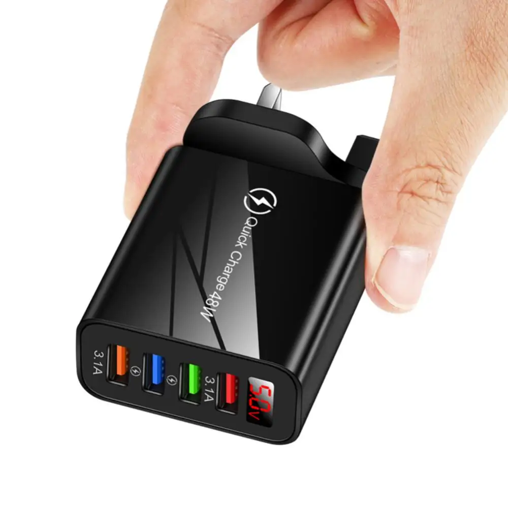 4 порта USB зарядное устройство 48 Вт Быстрая зарядка QC 3,0 для iPhone 13 12 11 Samsung Xiaomi Мобильный телефон ЕС США Великобритания вилка стены планшета путешествия