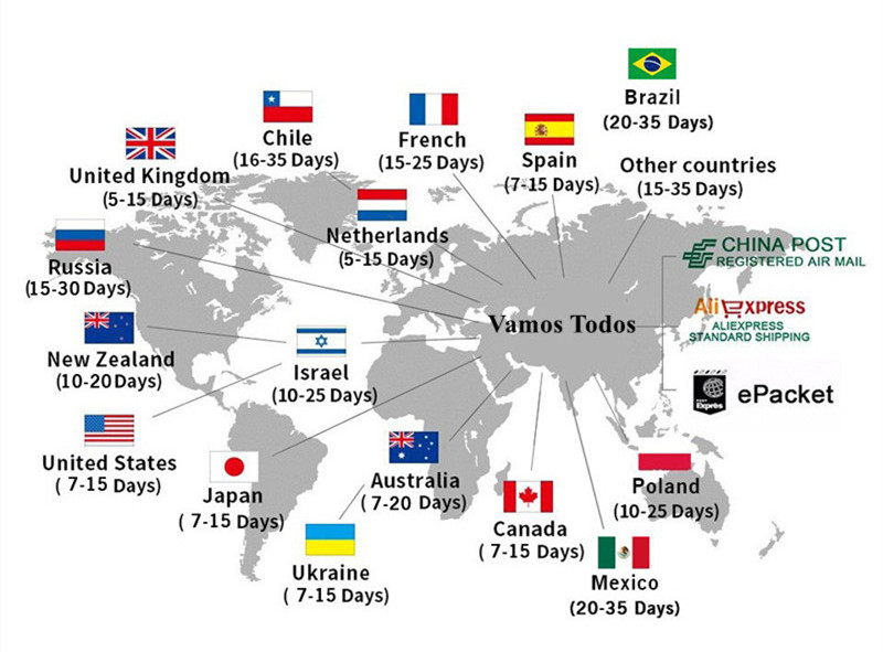 Посылка будет отправлена авиа-отправление Почты Китая, Epacket, Aliexpress Saver и стандартной доставкой.