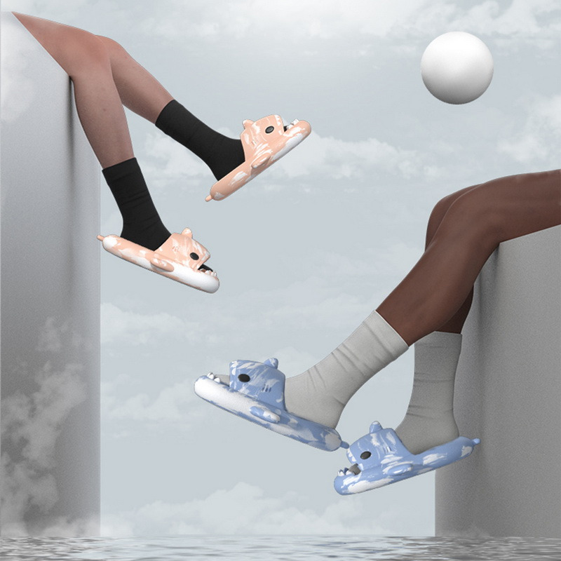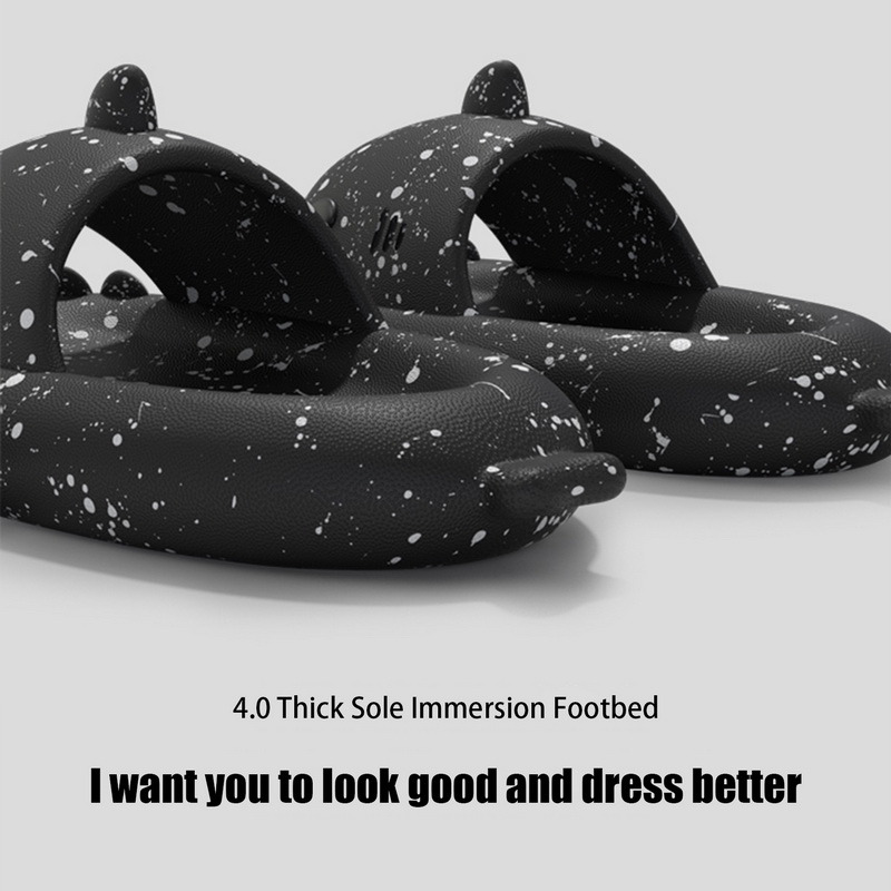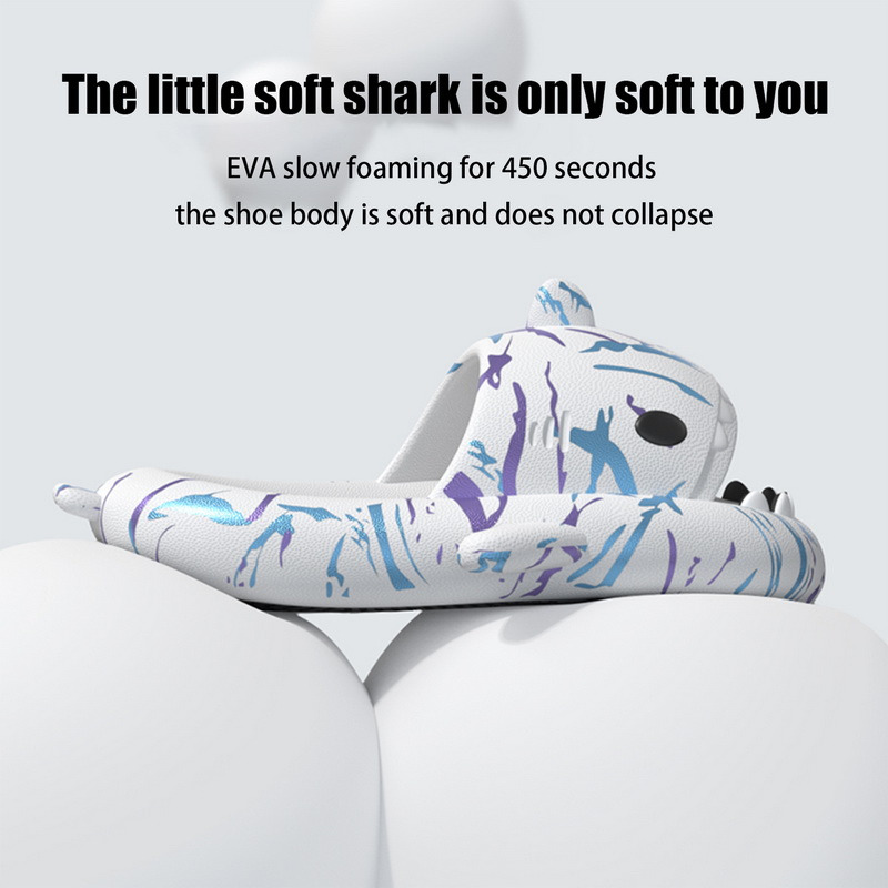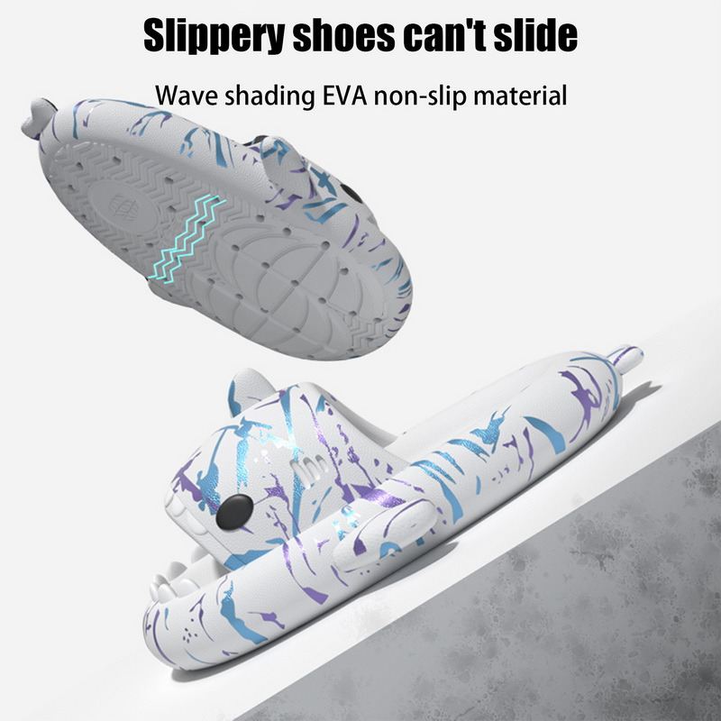 【Мягкий и удобный 】: 4 см Толстая подошва, милый дизайн с рисунком, уникальный дизайн с открытым носком, пусть рот акулы открывается и закрывается при ходьбе, новый и интересный. Разработан с вогнутой подошвой, которая защищает ваши пальцы от ударов ног стола или порогов двери.