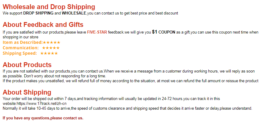 Используя Aliexpress стандартную логистику доставки, некоторые регионы, такие как Россия, получат посылка в течение 2 недель. Посылка на 100% гарантирована, что она не будет потеряна и будет доставлена вовремя.