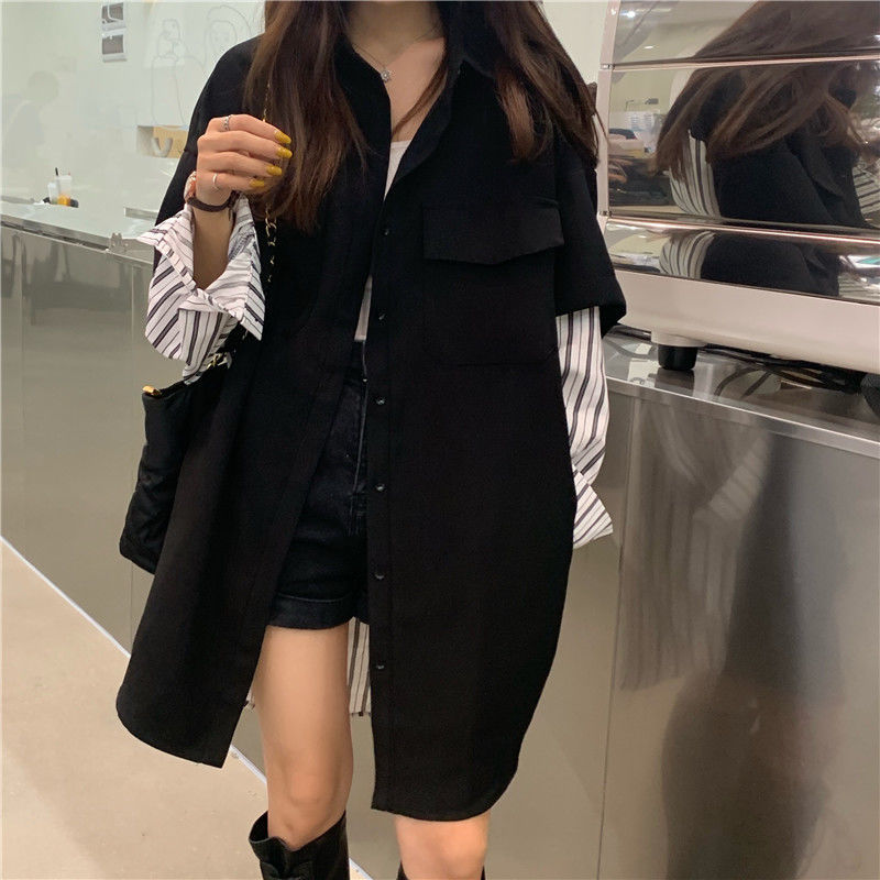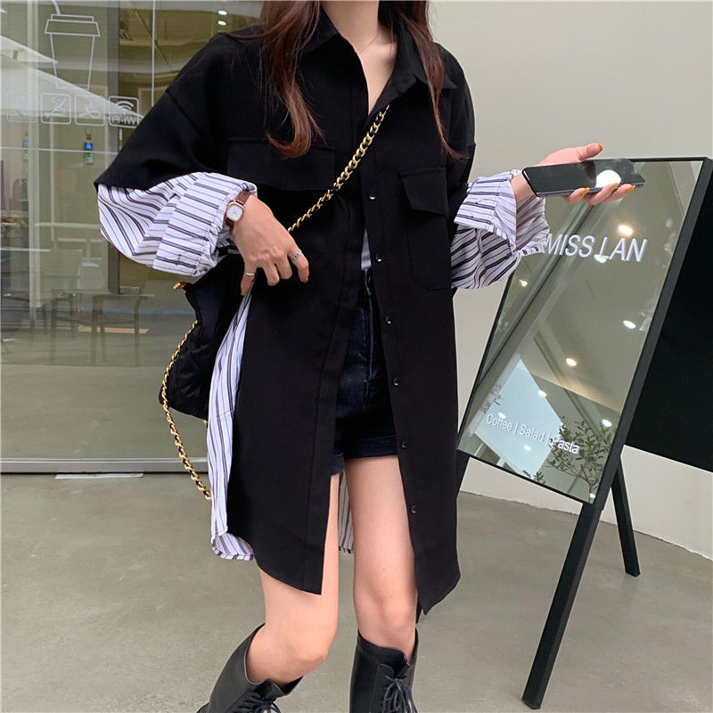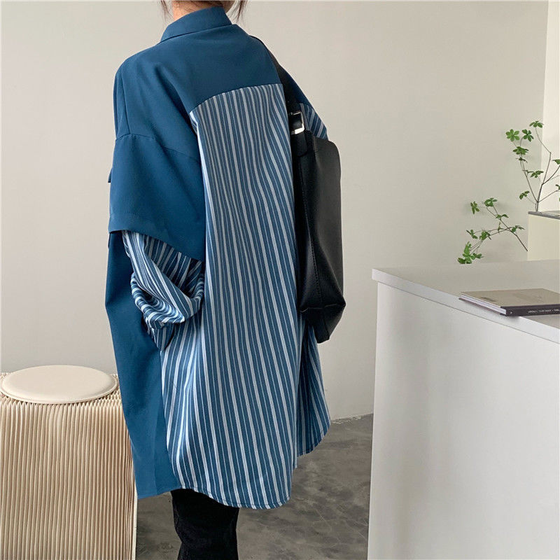 Женская блузка QWEEK в стиле Харадзюку, свободная рубашка с длинным рукавом и пуговицами, шикарная повседневная женская верхняя одежда с карманами в полоскуUSD 21,65 ~ USD21.65/Шт.