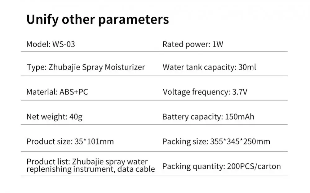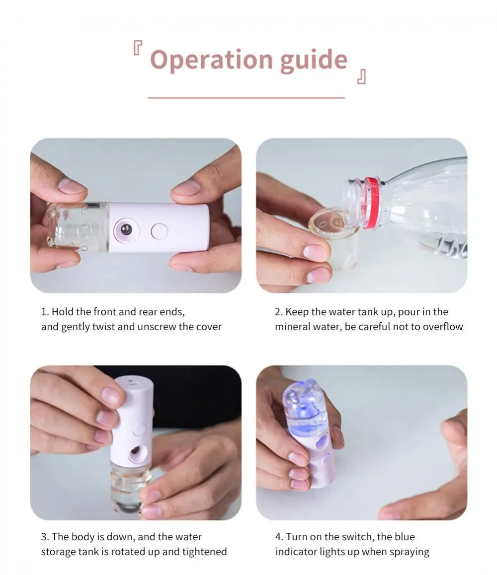 Примечание: Этот продукт подходит для натуральной минеральной воды, а не для чистой воды и дистиллированной воды. Слишком высокая или слишком низкая плотность воды может привести к конденсации или закупорке распылителя.
