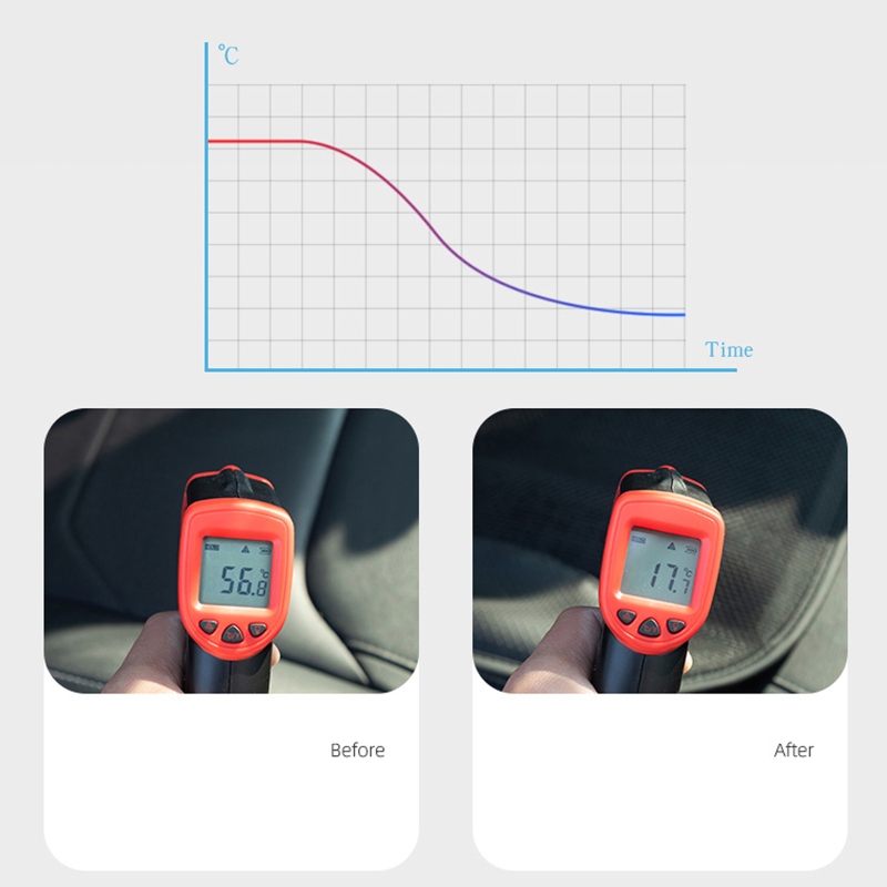 Конструкция охлаждающей подушки сиденья позволяет циркулировать прохладный воздух через удобную сетку из микрофибры. Вместо того, чтобы наполнять ваш автомобиль горячим воздухом и сделать его более влажным, эта Подушка сиденья дует легкие, дышащие слои холодного воздуха между вашим телом и сиденьем. Холодный поток воздуха от подушки уменьшает тепло тела и смягчает пот, делая вас вырубать прохладу и прохладу во время путешествия.