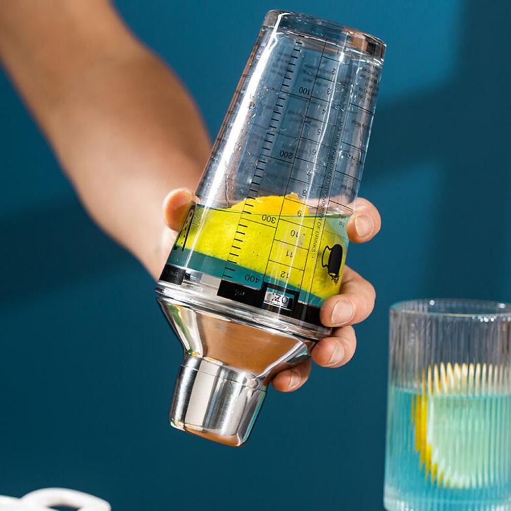 Этот шейкер разработан с двойной шкалой, что позволяет легко захватывать пропорции ингредиентов.