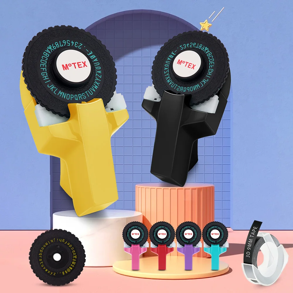 Mini Label Printer Motex E101 3D Embossing Label Maker Motex E-101 Manual Labeler DIY Self-adhesive Sticker OR 5PK Dymo 3D Tape 9mm