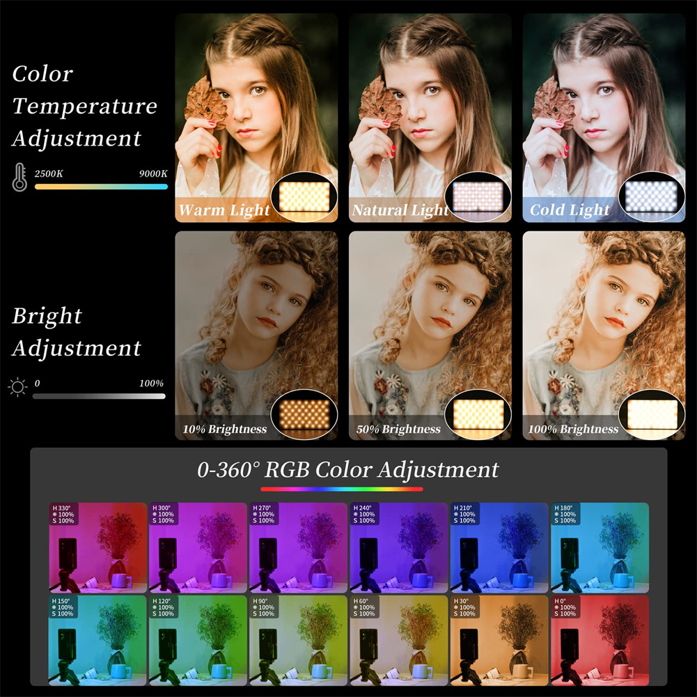 3. Цветной светильник RGB: 360 ° регулируемый, 0%-100% регулируемая яркость, предоставляя вам различные красочные светильник ing effects. Позвольте вам быстро создать вдохновение одновременно.