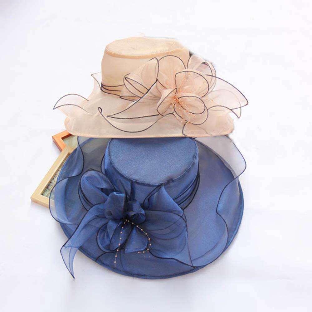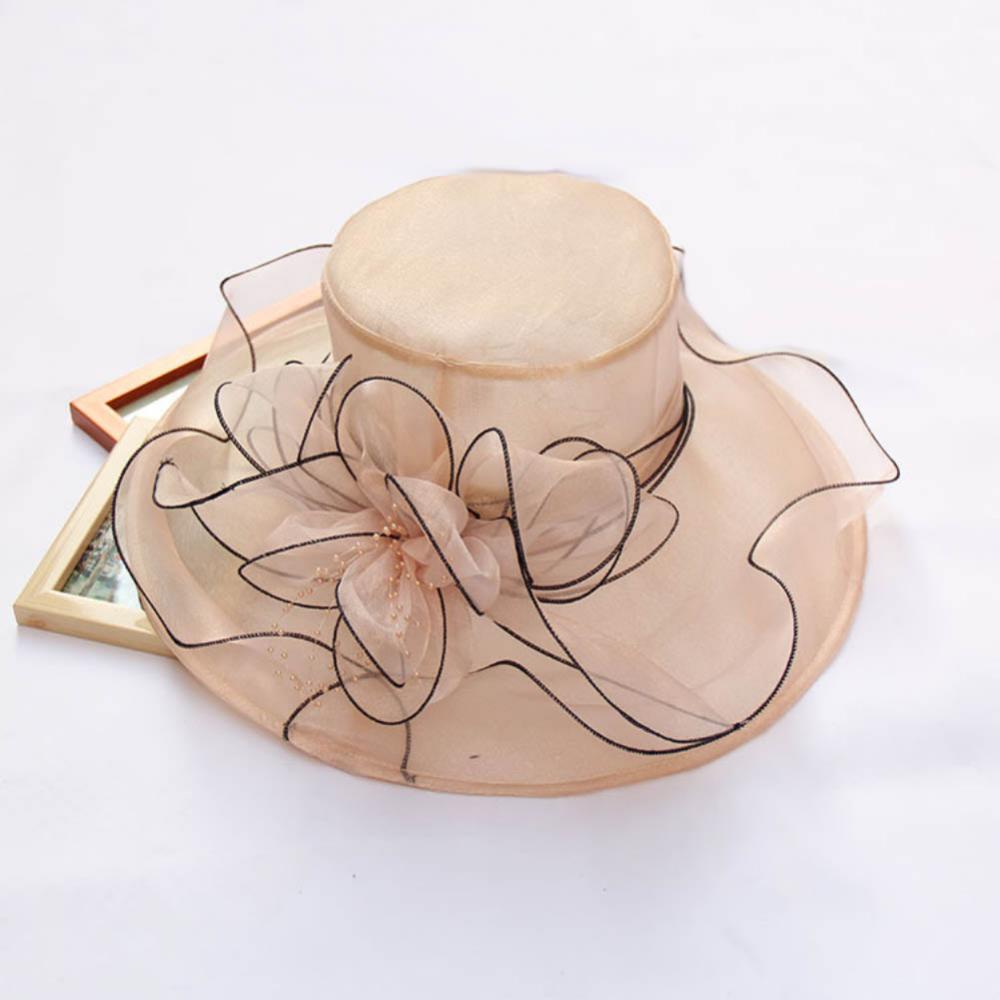 Цветочные органзы с широкими полями церкви Кентукки Дерби очарование леди чай вечерние шляпа от солнца