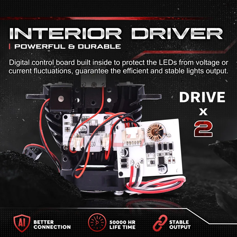 Светодиодный чип:Изготовлен из высокосветящейся эффективной светодиодный чипы, мгновенный Запуск без задержки, не только более эффективный и мощный, но и энергосберегающий.80000 часов непрерывной работы с светодиодный.
