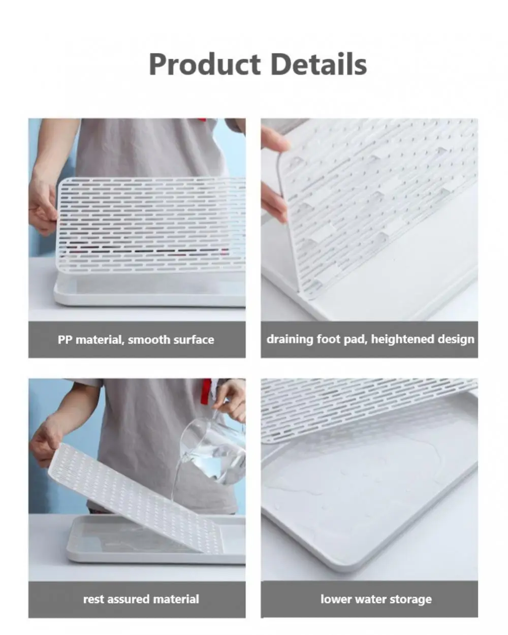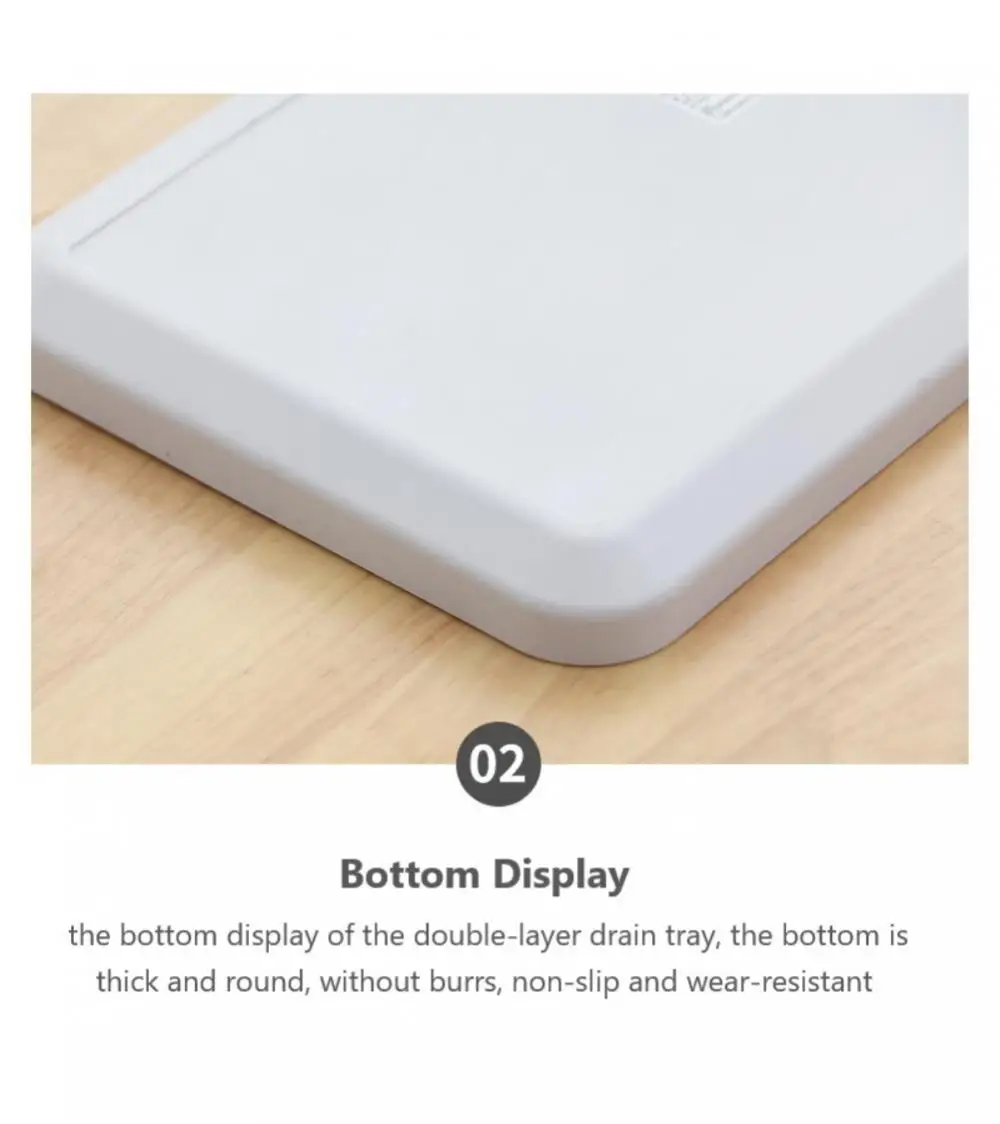1. Верхний слой для хранения, нижний слой для хранения воды: полый сетчатый дизайн, увеличивающий полый слой и удерживающий определенное расстояние от водосодержащего слоя, двухслойный дизайн, легко сливать, чистить и освежать, и держать столешницу аккуратной