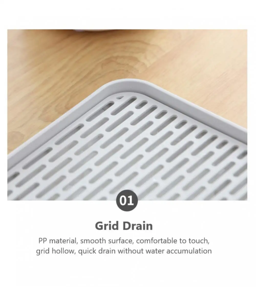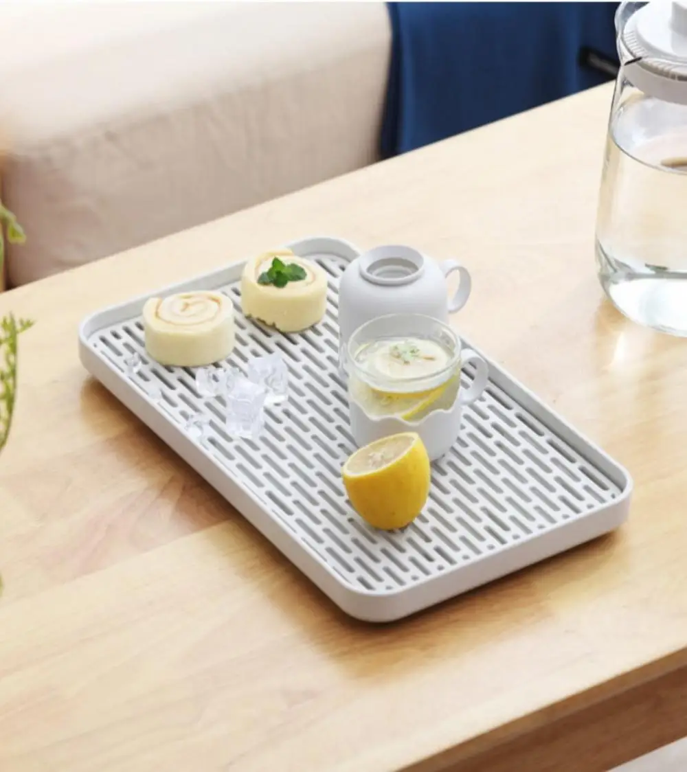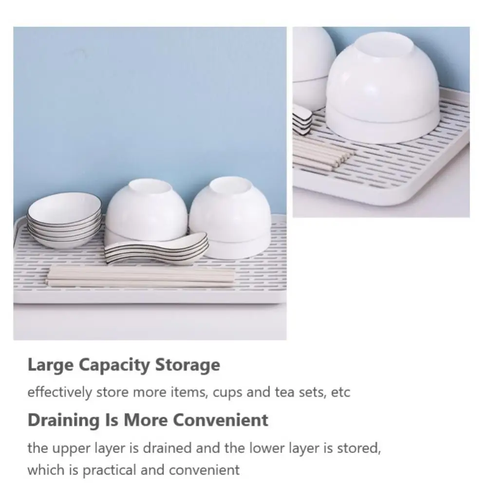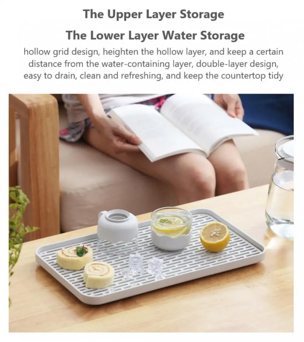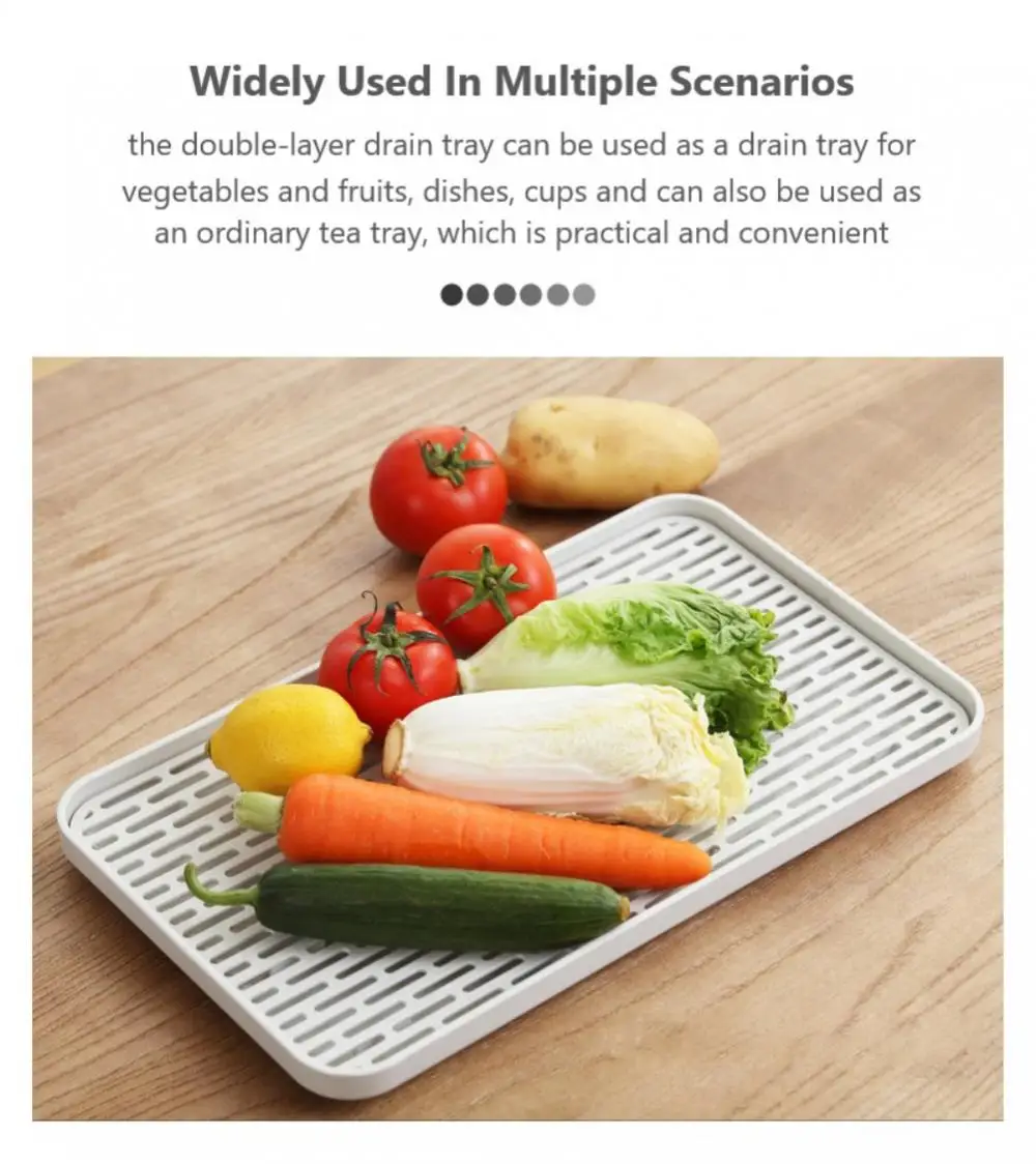 2. Многофункциональное и широкое использование: двухслойный сливной лоток может использоваться в качестве сливного лотка для овощей и фруктов, блюд, чашек, а также может использоваться в качестве обычного чайного лотка, практичный и удобный