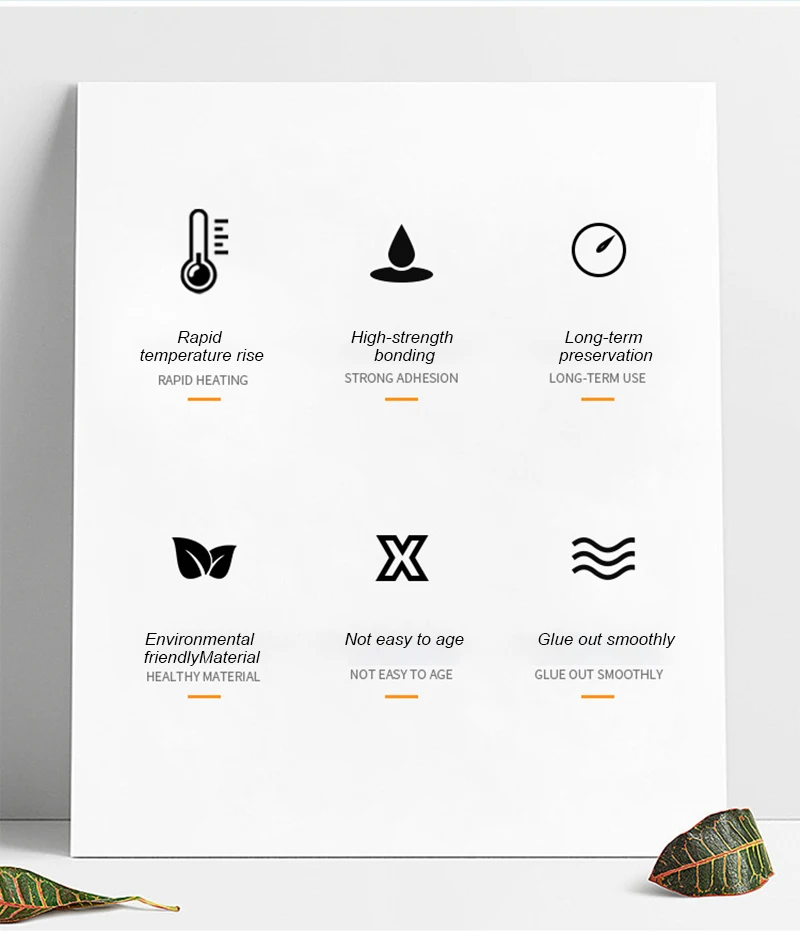 Утолщаются и удлиняют нагревательный элемент, нагревательный элемент является практичным материалом, мощность большая, и эффект быстрого выхода клея действительно реализован