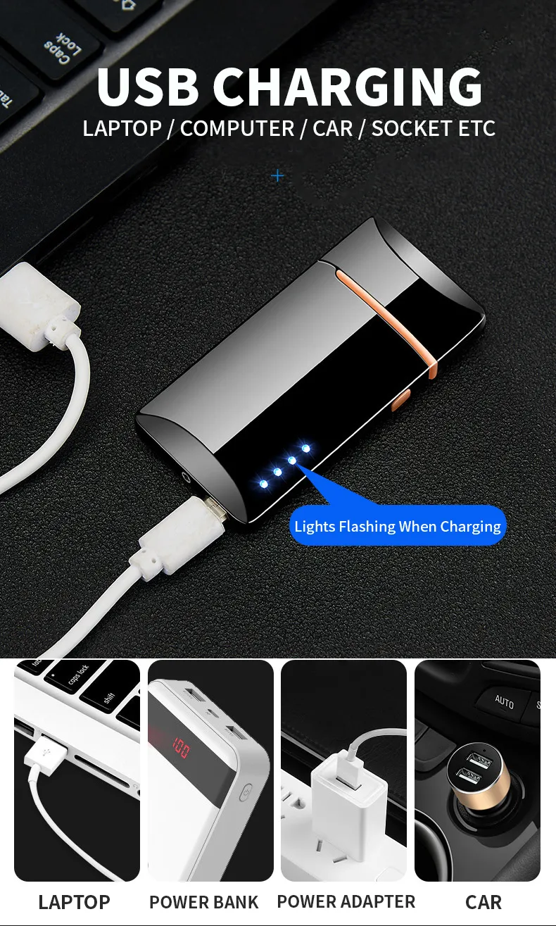 Креативная электрическая зажигалка с подключением к USB двойная дуговая плазменная Зажигалка перезаряжаемая ветрозащитная электронная турбо зажигалка подарок для мужчин TikTok Hot