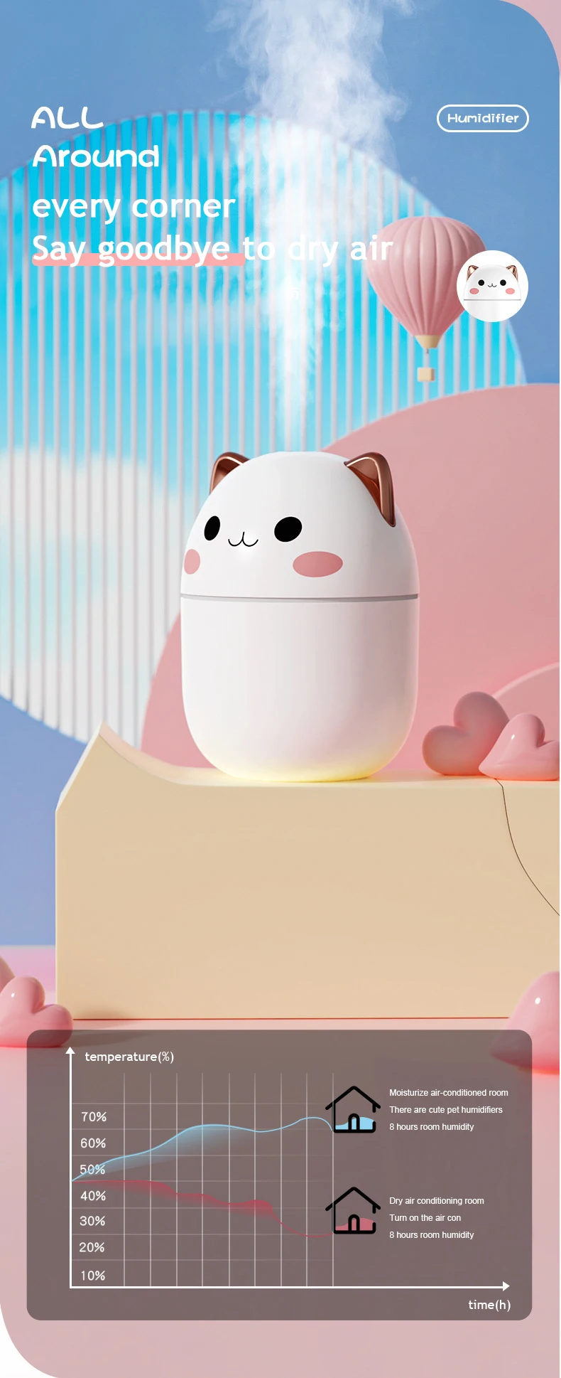 USB мини увлажнитель воздуха милый Kawaiil аромадиффузор с ночной светильник Холодный Туман для спальни дома автомобиля растения очиститель увлажнители