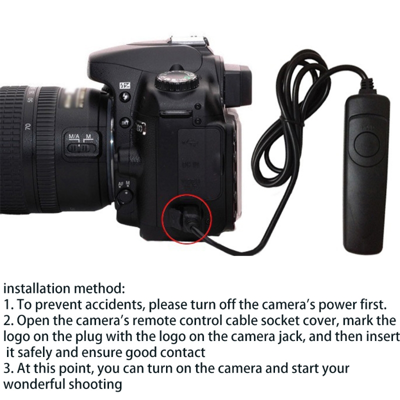 Легко использовать, просто прочно вставьте вилку в гнездо пульта дистанционного управления камеры и включите камеру.
