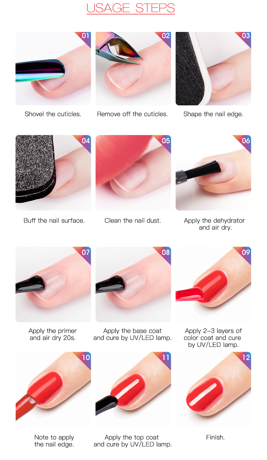 -6. Удалите липкий остаток на ногтях с помощью очищающего средства. Затем нанесите питающее масло кутикулы для увлажнения влаги в кутикулу и кожу вокруг ногтя.