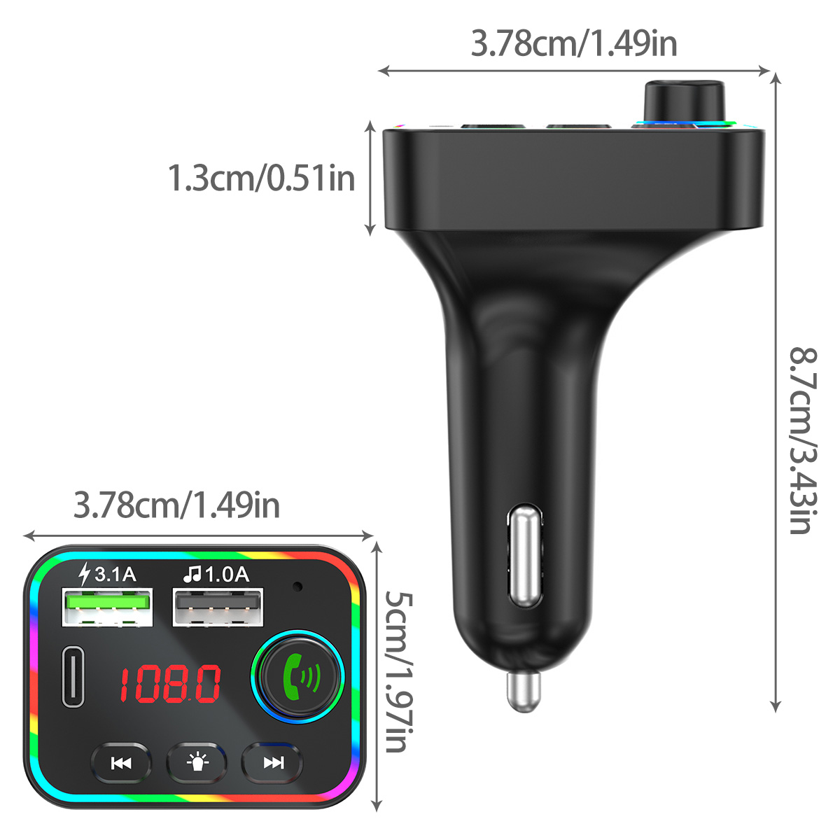 [Два usb-порта] двойная usb-зарядка, USB1 Выход: 5 В/2,1 А, USB2 Выход: 5 В/1,0 А, может читать USB флеш-музыку. И поддерживает быструю зарядку большинства смартфонов на рынке.