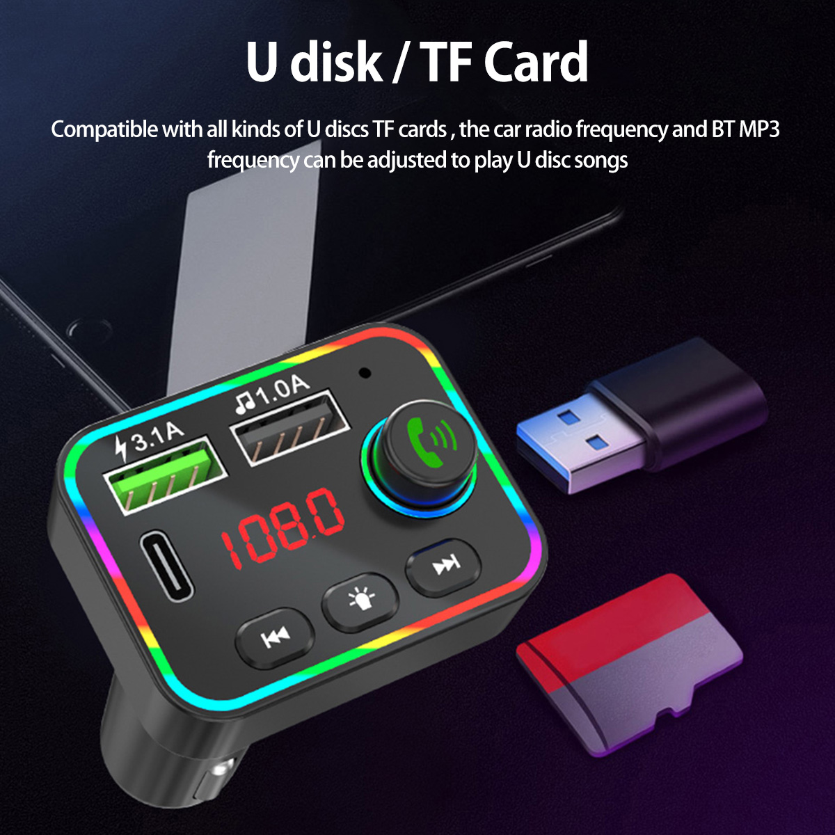 [Многофункциональность] поддержка функции отключения воспроизведения памяти, частоты памяти, дорожки, громкости, перезапуска выключения, начала воспроизведения с начала отключенной песни. С 7 с аккумулятором, Трехцветная подсветка может использоваться в темное время суток.