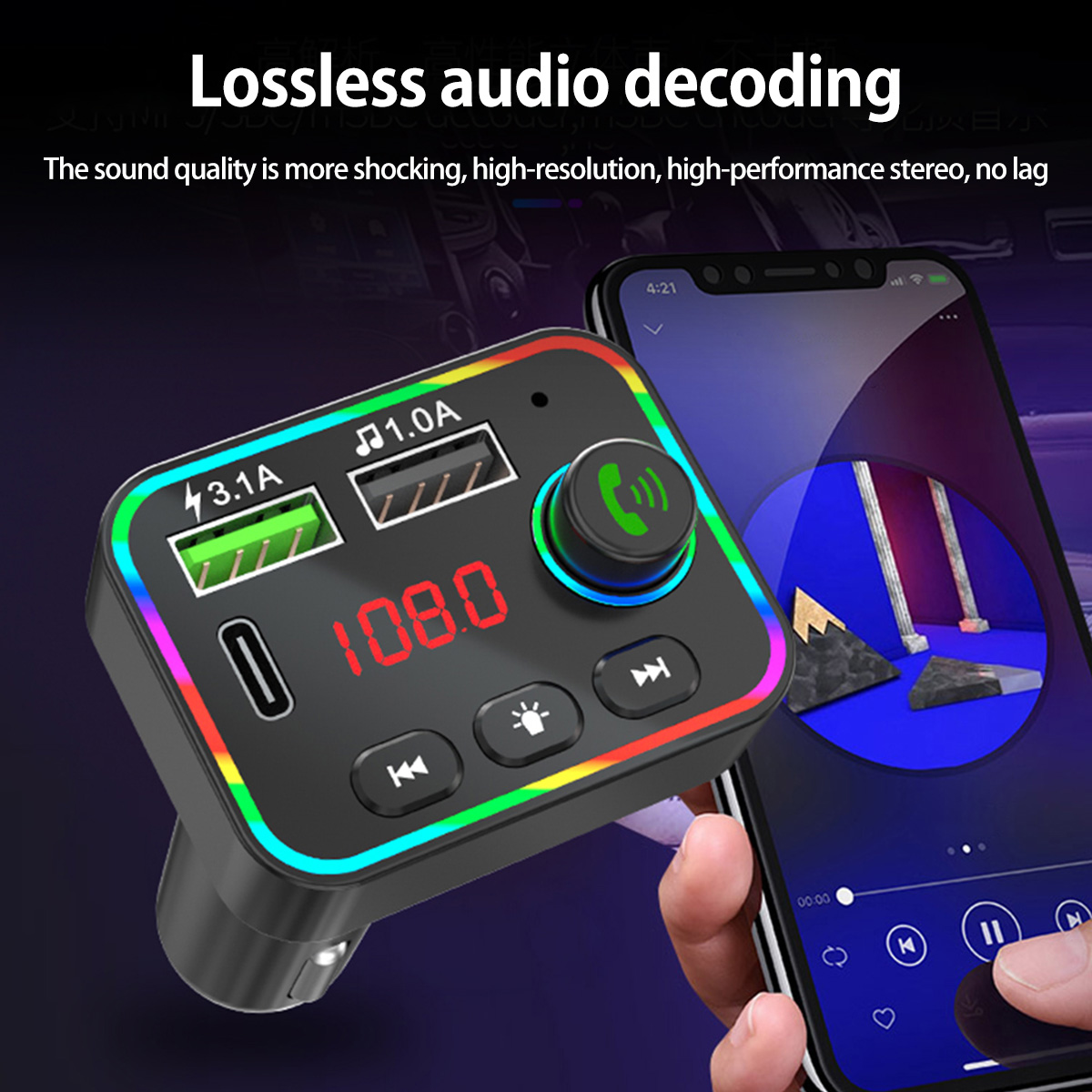 [Чип Bluetooth 5,0] со встроенным чипом Bluetooth V5.0, Автомобильный MP3-плеер оснащен стабильным сигналом, защитой от помех, интеллектуальным шумоподавлением и более четкими вызовами.
