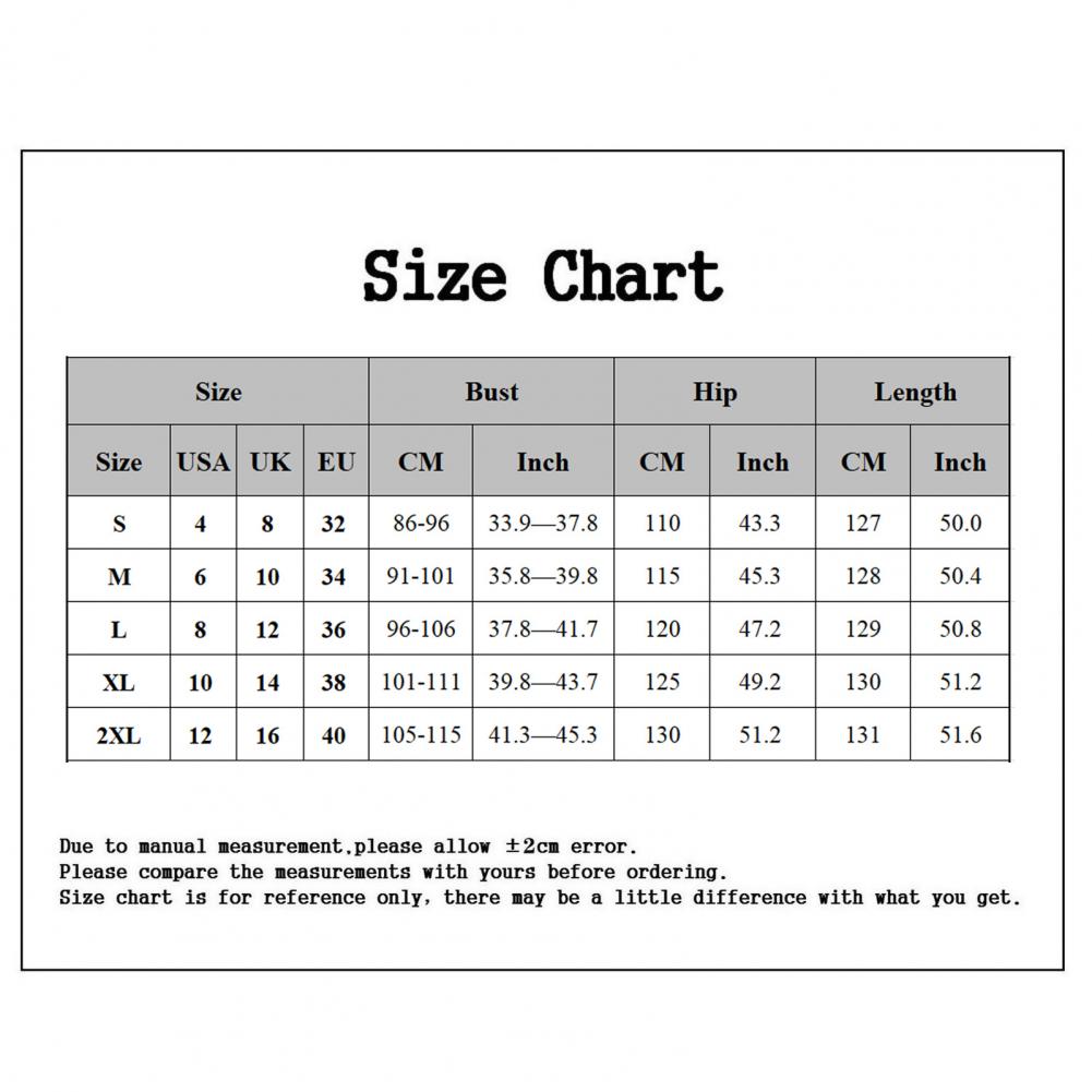 Размер: 2XL, длина: 131 см/51,6 ", обхват бедер: 130 см/51,2", обхват груди: 105 см-115 см/41,3 "-45,3" (прибл.)