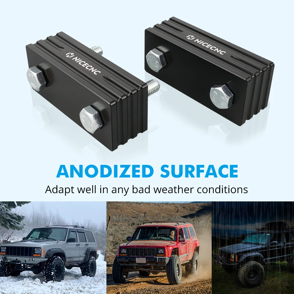 NICECNC 1 Pair Aluminum Hood Vent Space Riser Spacer Kit for Jeep Cherokee XJ 1984-2001 Black Silver CNC-machined Car Accessorie