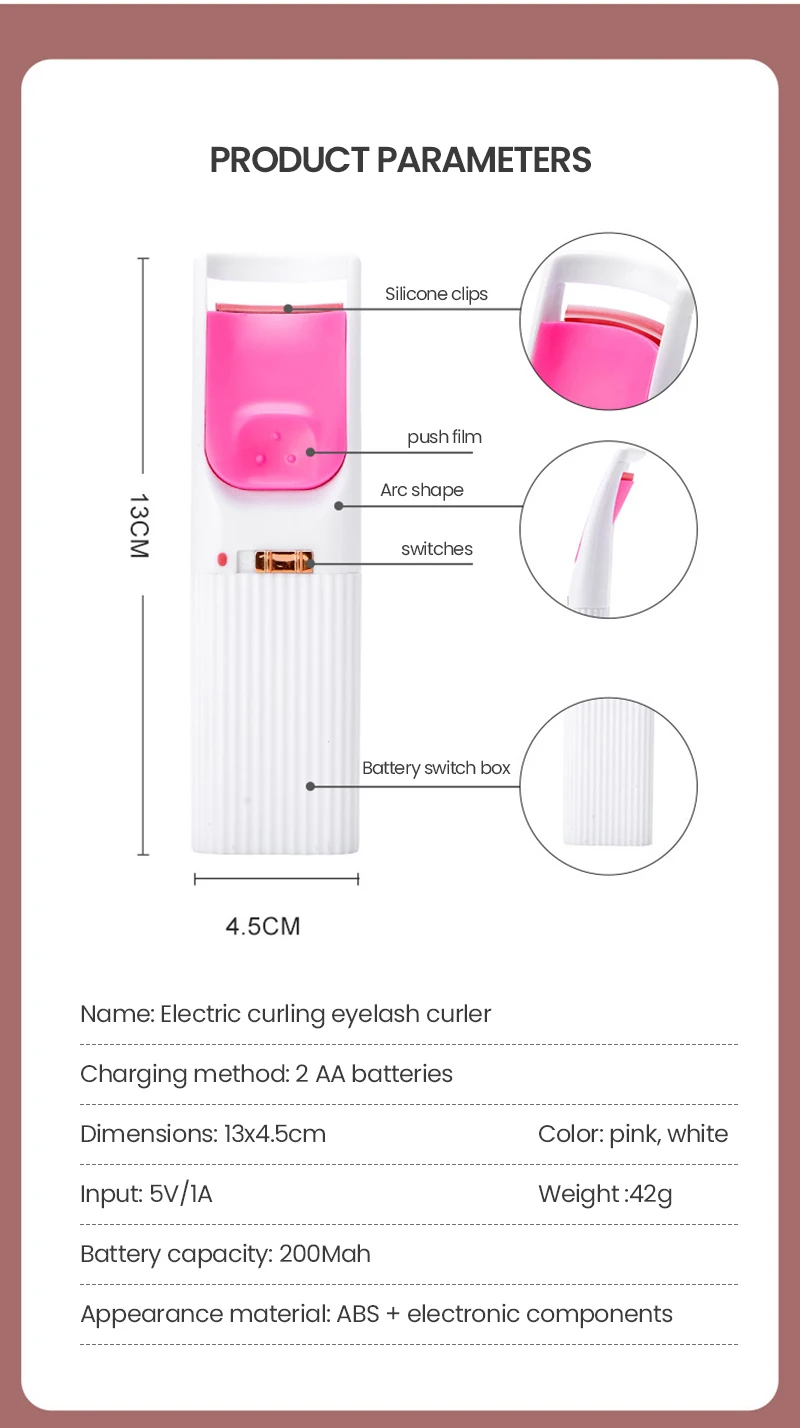 1. 【Легко использовать 】 с помощью электрического бигуди для ресниц, вы можете скручивать ресницы одним зажимом, что удобно и быстро использовать