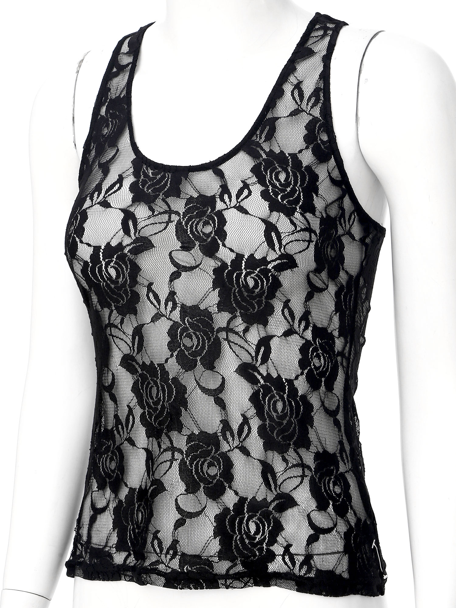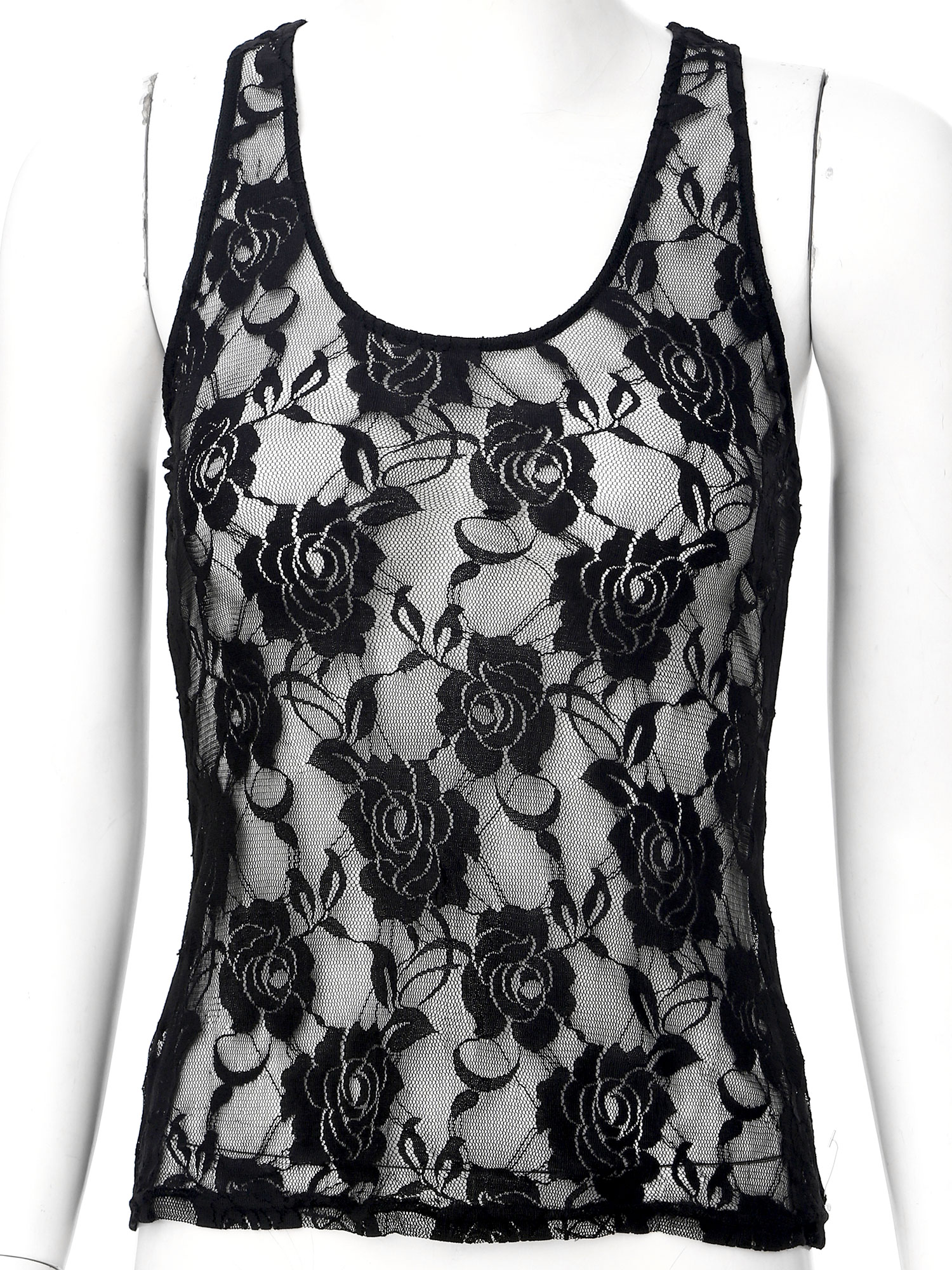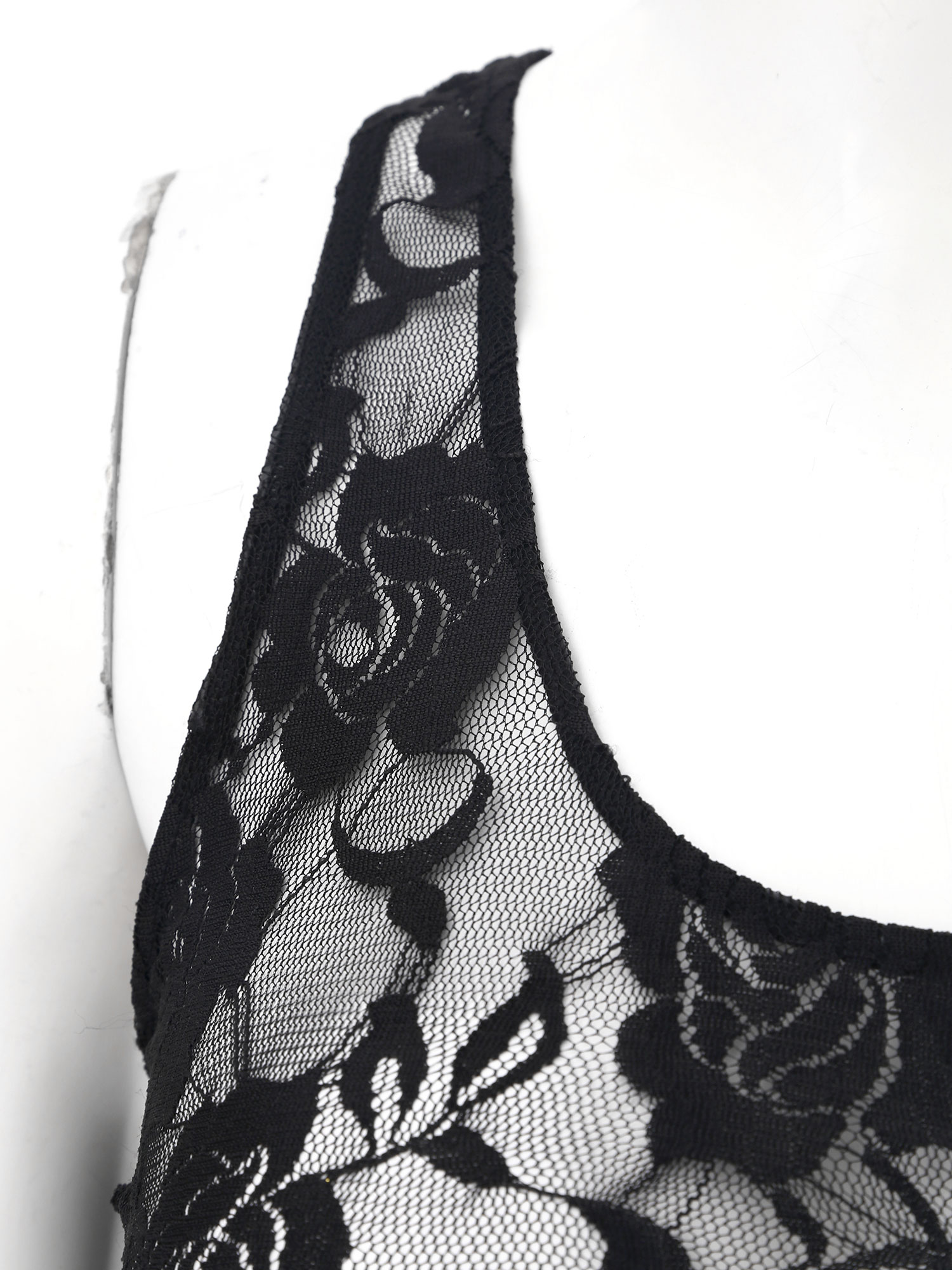 Женская Прозрачная Футболка без рукавов с цветочным кружевом и открытой спиной.