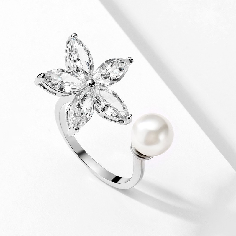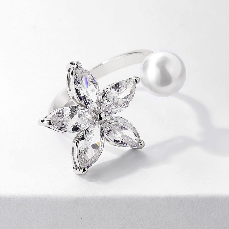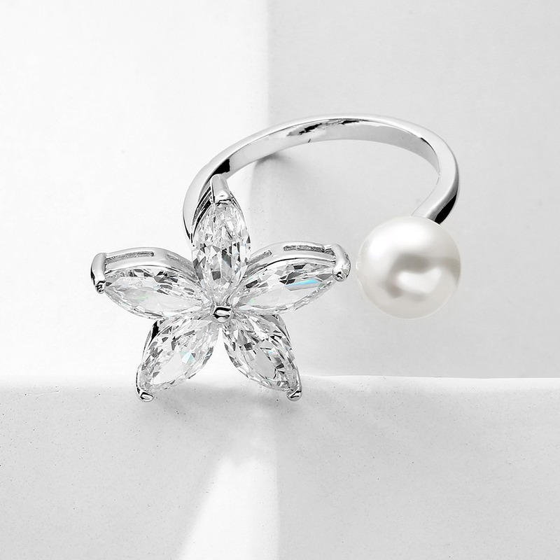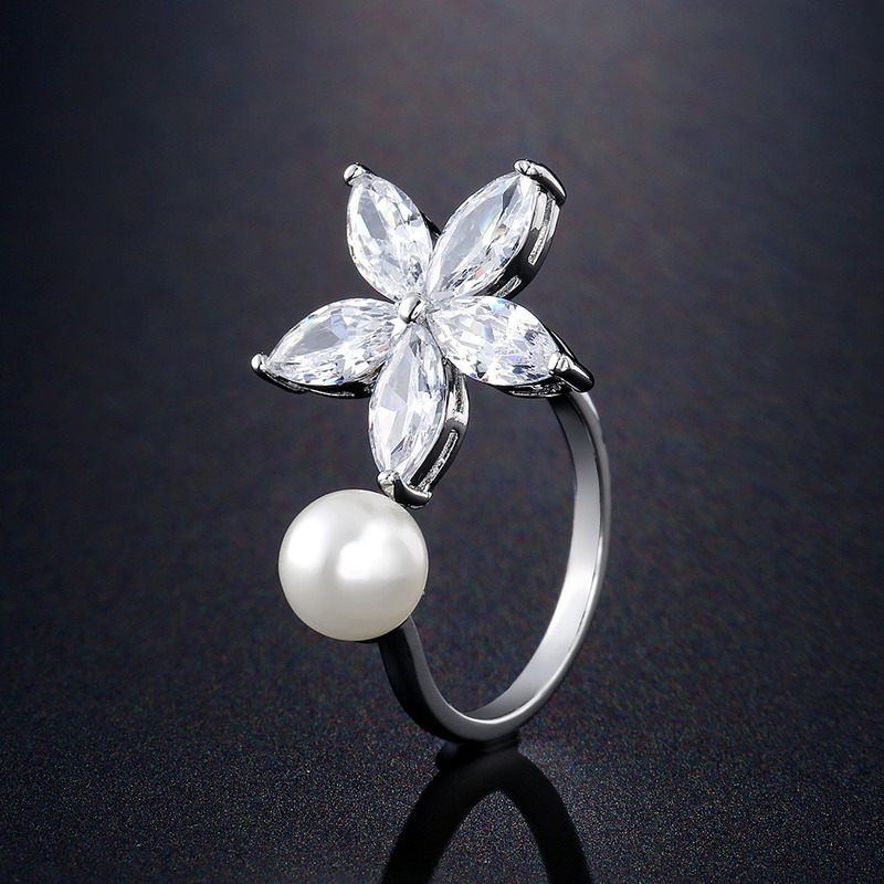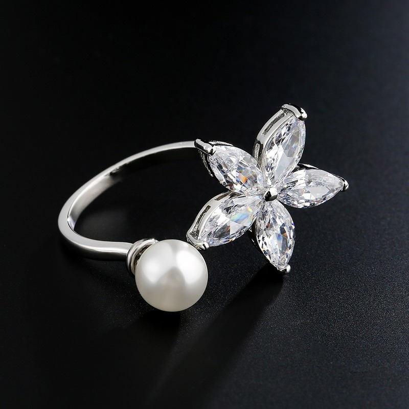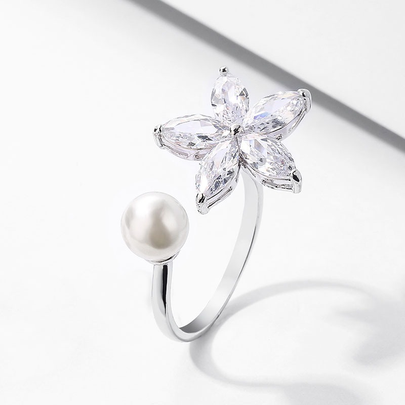 Новые милые Романтические кольца с цветами и цирконием для женщин, модные вечерние ювелирные изделия, Простое Элегантное кольцо для свиданий с жемчугом на День святого Валентина