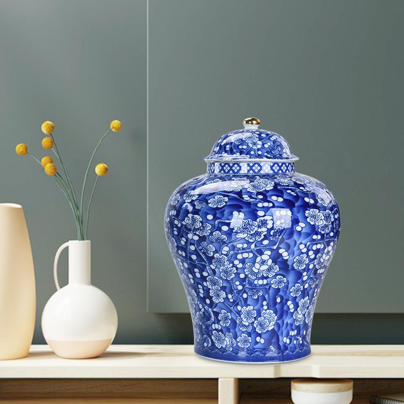 Традиционный Стиль: классический синий и белый фарфоровый декоративный кувшин, рот банки гладкий, а Цветная глазурь снаружи и внутри банки. Это делает украшение вашей комнаты более стильным и элегантным.