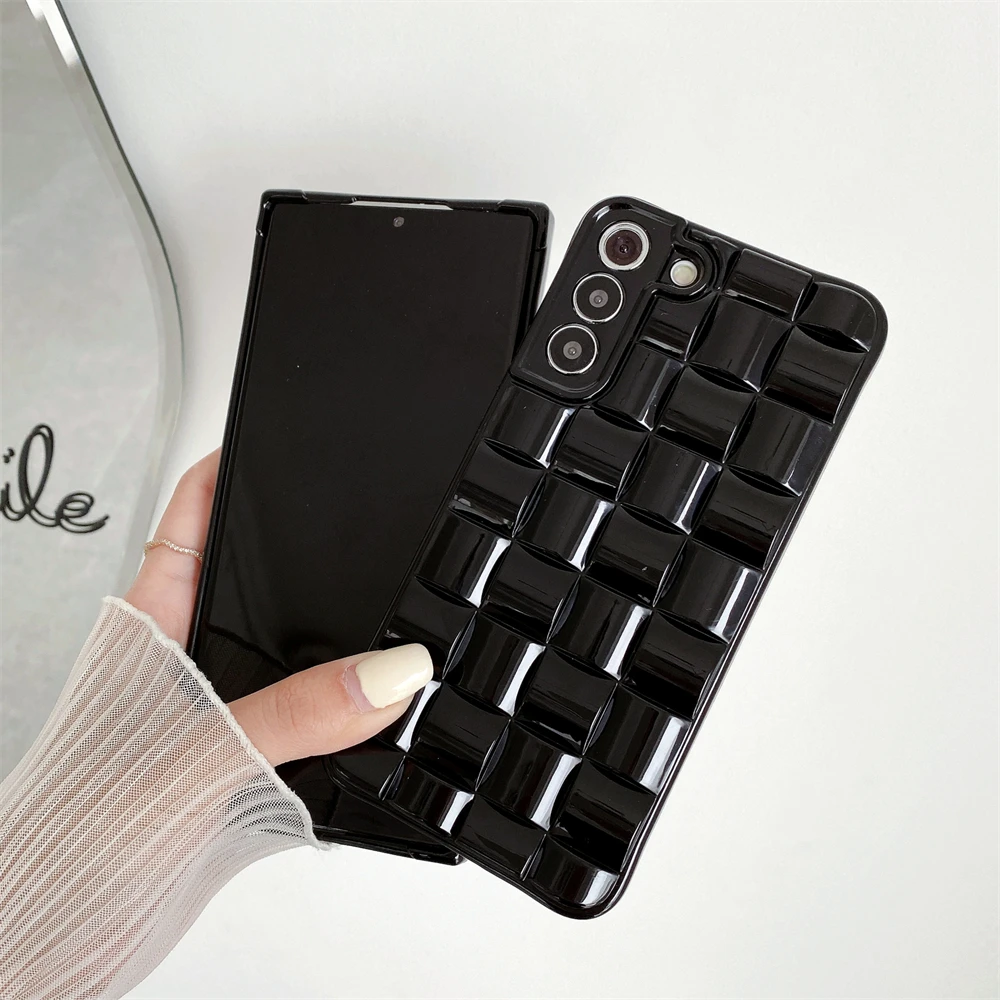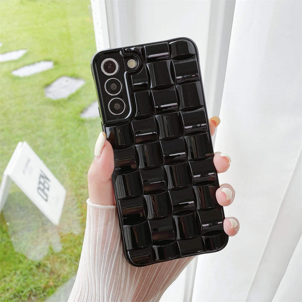 3D Cube Shockproof Reflective Phone Case For Samsung Galaxy S22 S21 Ultra S22 Plus Fashion Black Bumper Column Back Cover Fundas