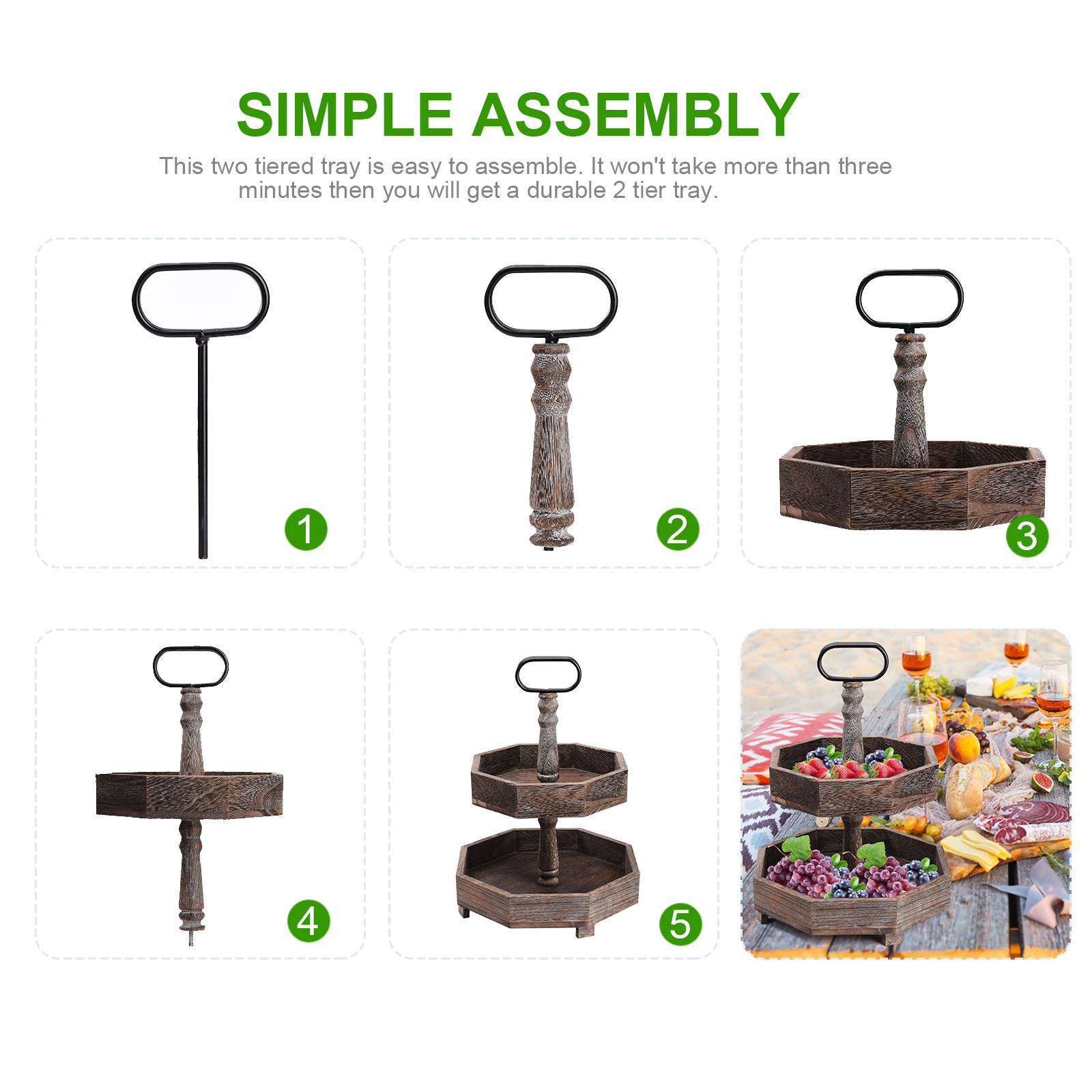 4. Простая сборка: Этот двухярусный лоток Легко собирается. Это не занимает более трех минут, после чего вы получите прочный 2 яруса лоток. Классический дизайн и высокое качество гарантируют, что он используется для длительного времени.