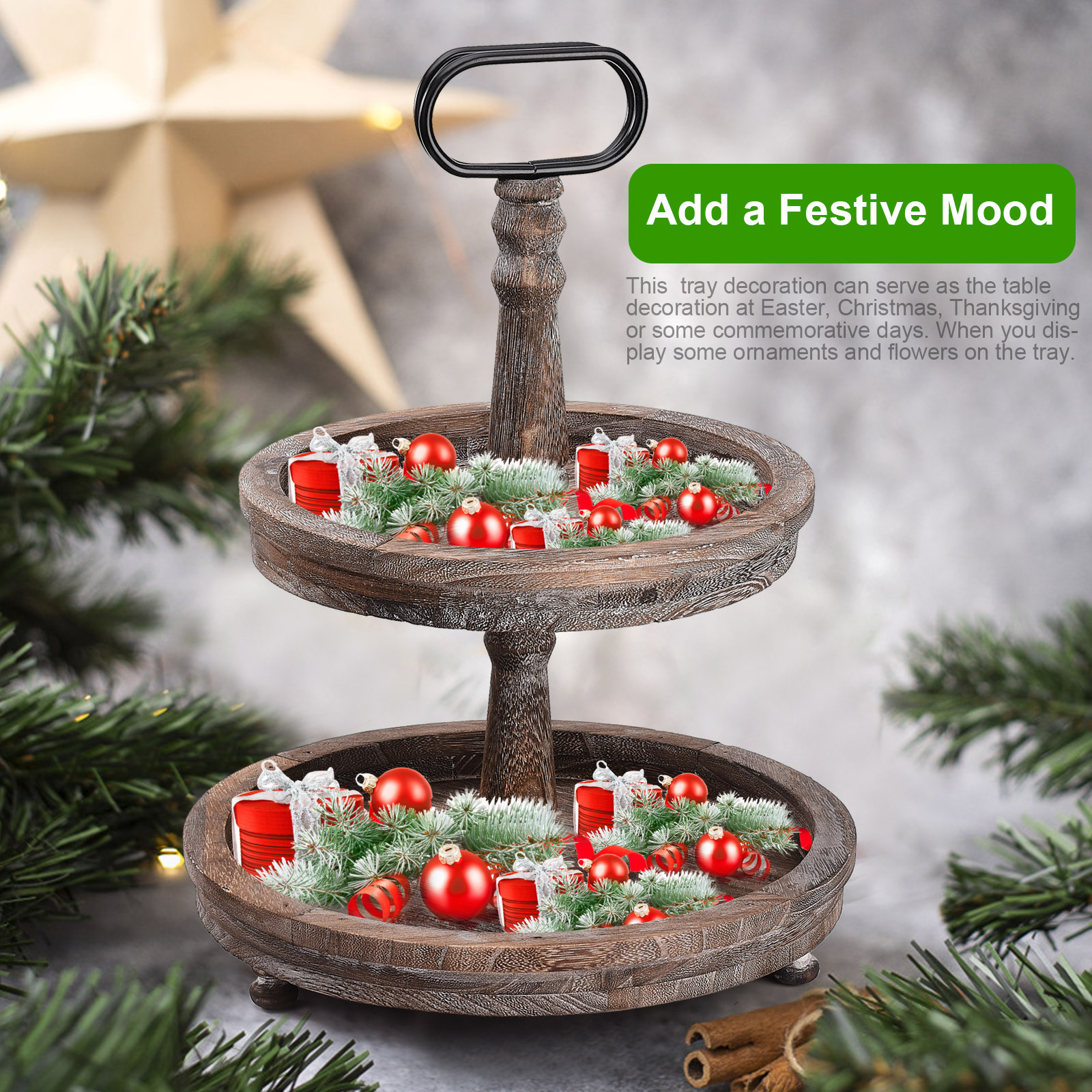 5. Фантастическая идея подарка: Этот двухярусный сервировочный поднос является очаровательным подарком для вашей семьи и друзей, которые любят деревенский стиль или которые одержимы внутренней отделкой. Как только они украсят его, они сразу полюбят его!