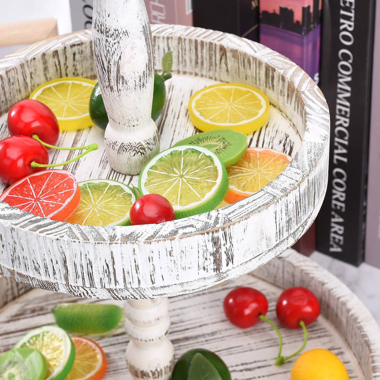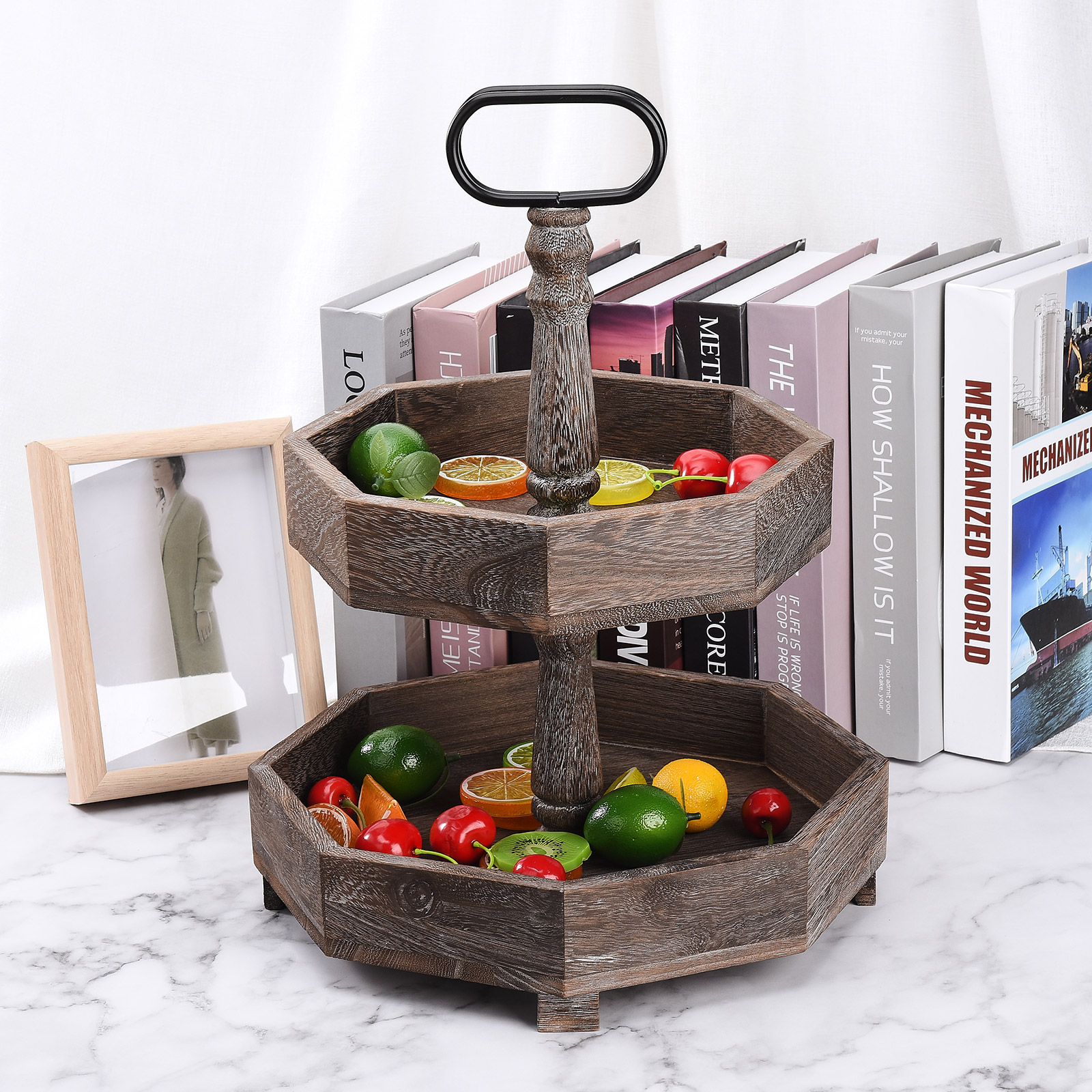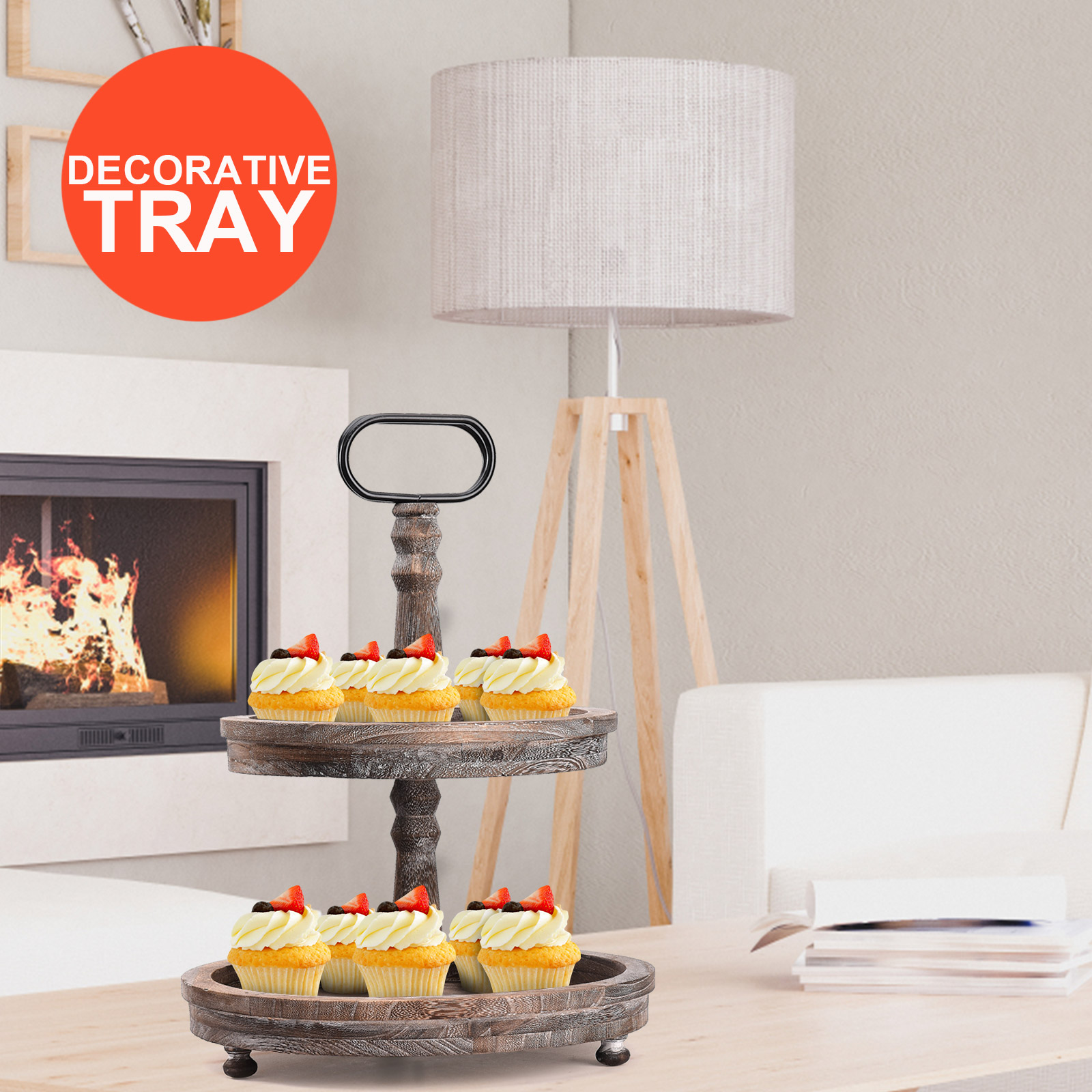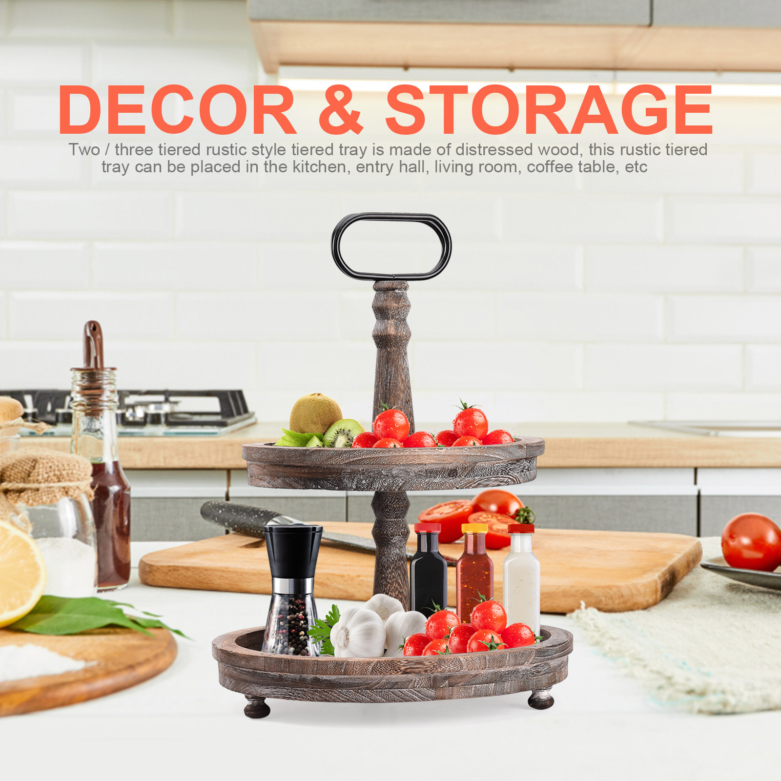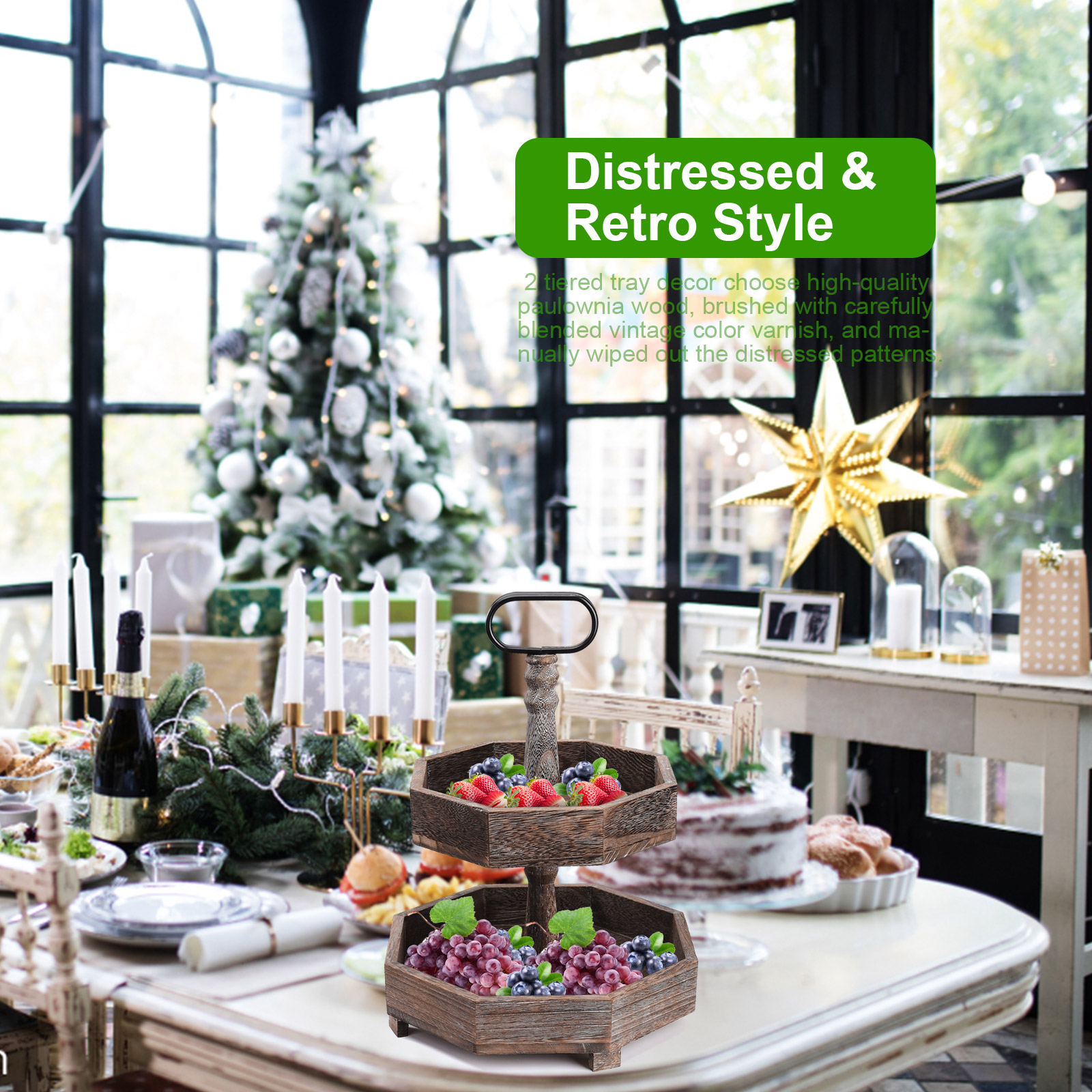 2. Проблемный и Ретро Стиль: 2-Ярусный Декор подноса Выберите высококачественную древесину павловнии, почищенную тщательно смешанным винтажным цветным лаком и вручную вытертую Проблемные узоры. Все детали были посвящены 100% усилий.