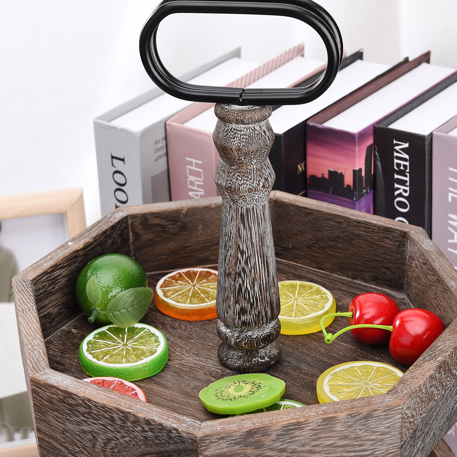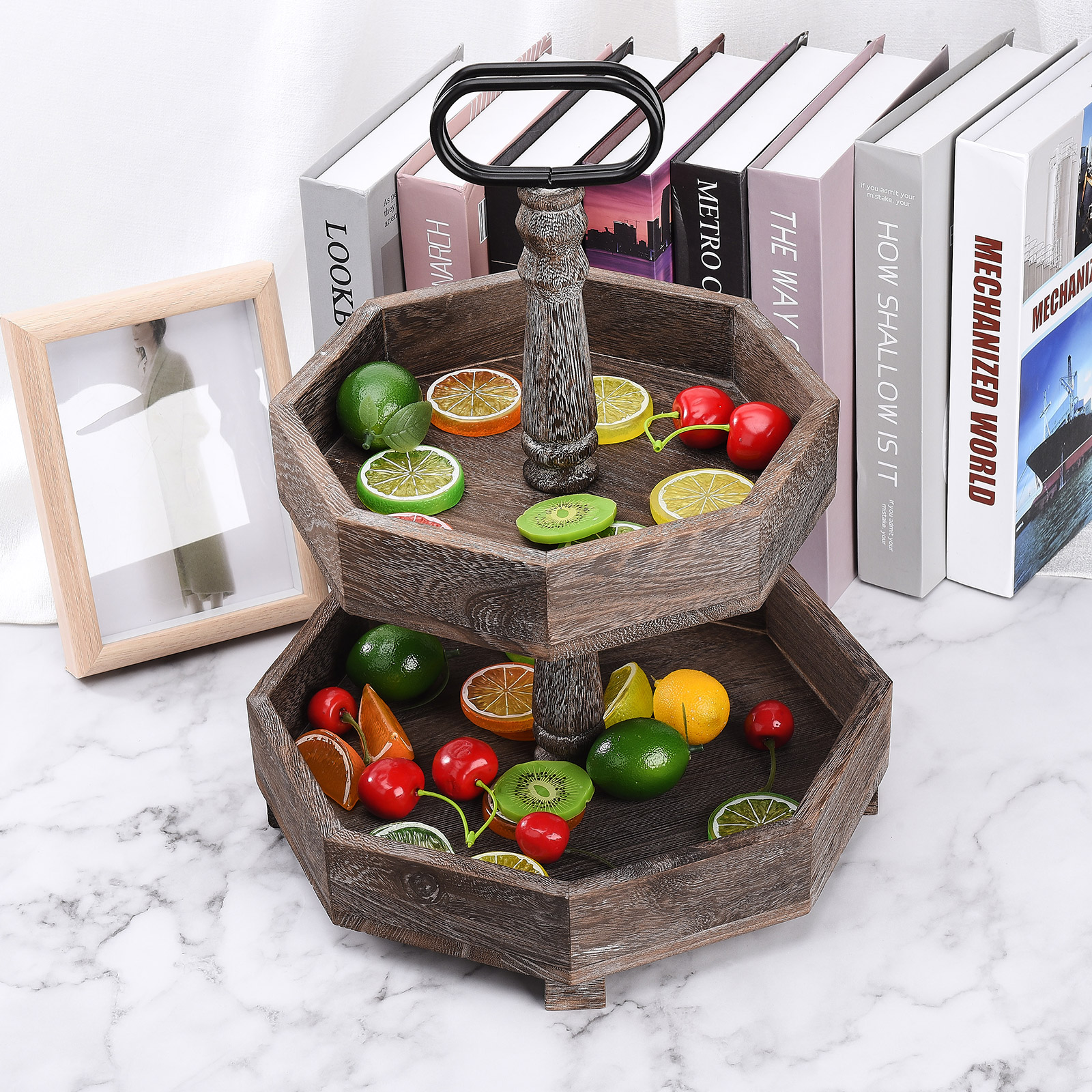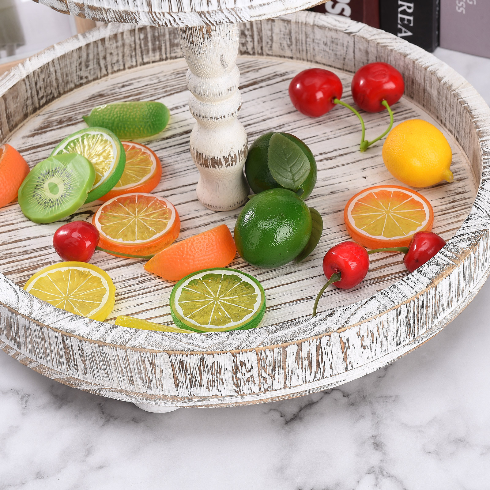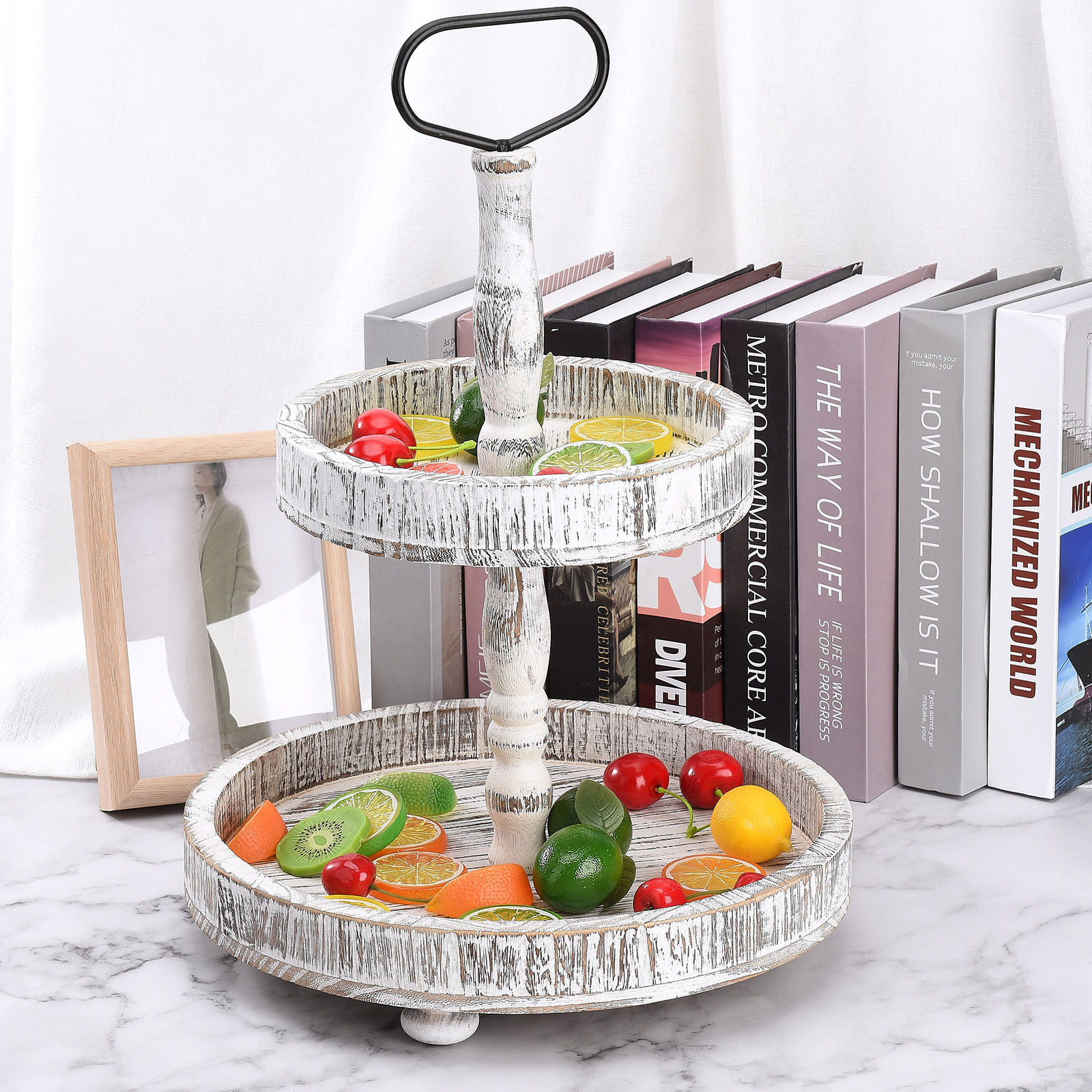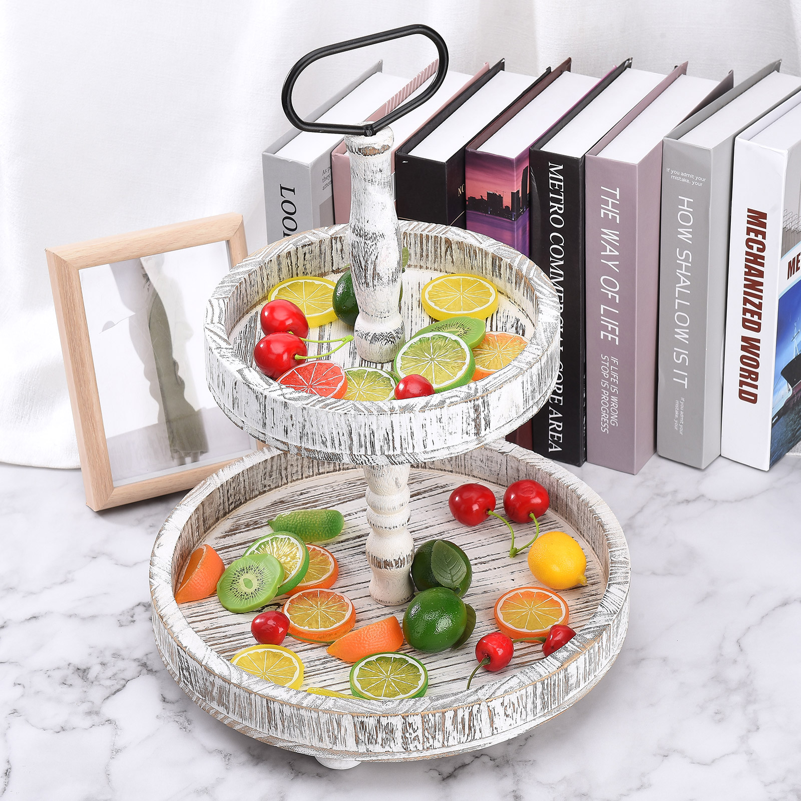 2. Проблемный и Ретро Стиль: 2-Ярусный Декор подноса Выберите высококачественную древесину павловнии, почищенную тщательно смешанным винтажным цветным лаком и вручную вытертую Проблемные узоры. Все детали были посвящены 100% усилий.