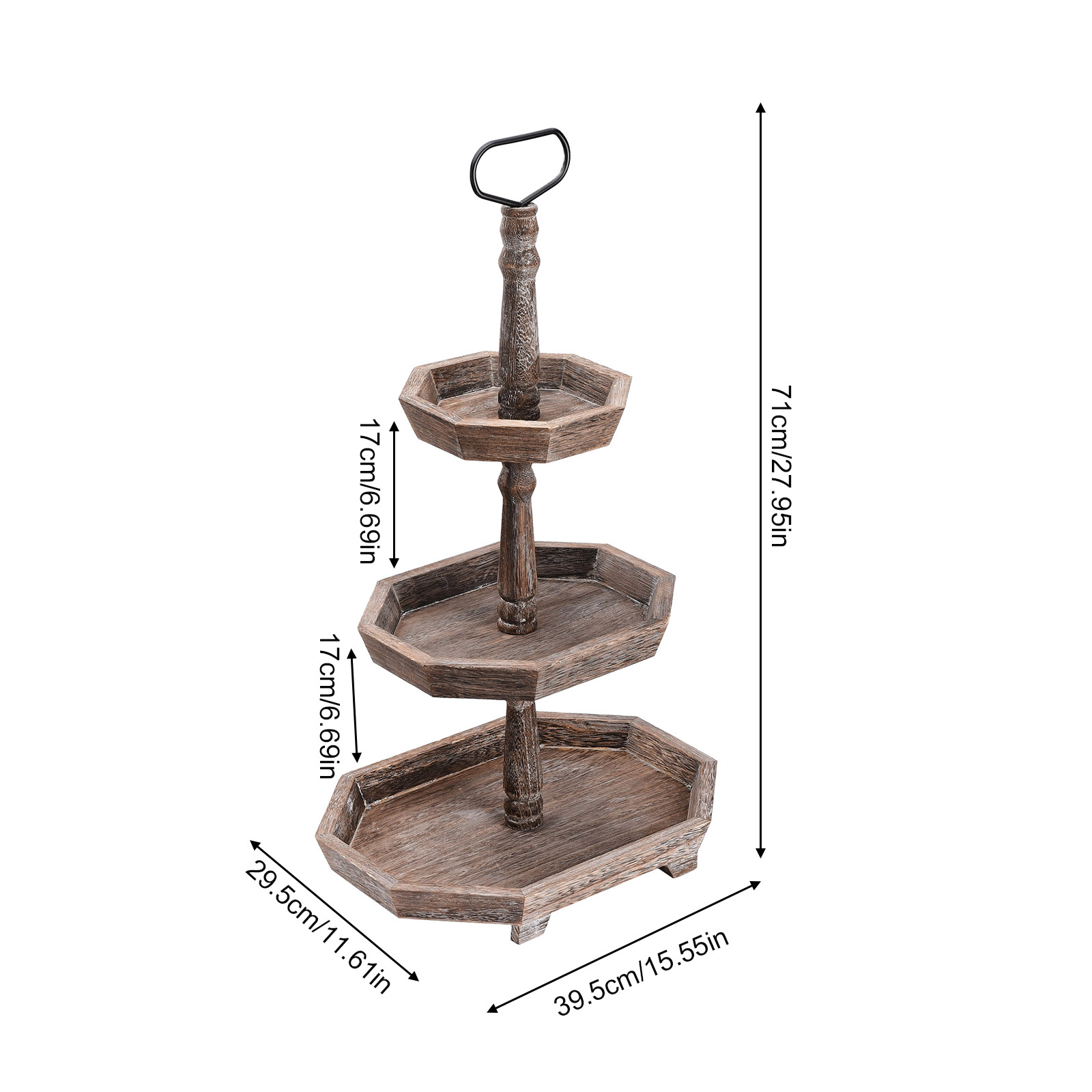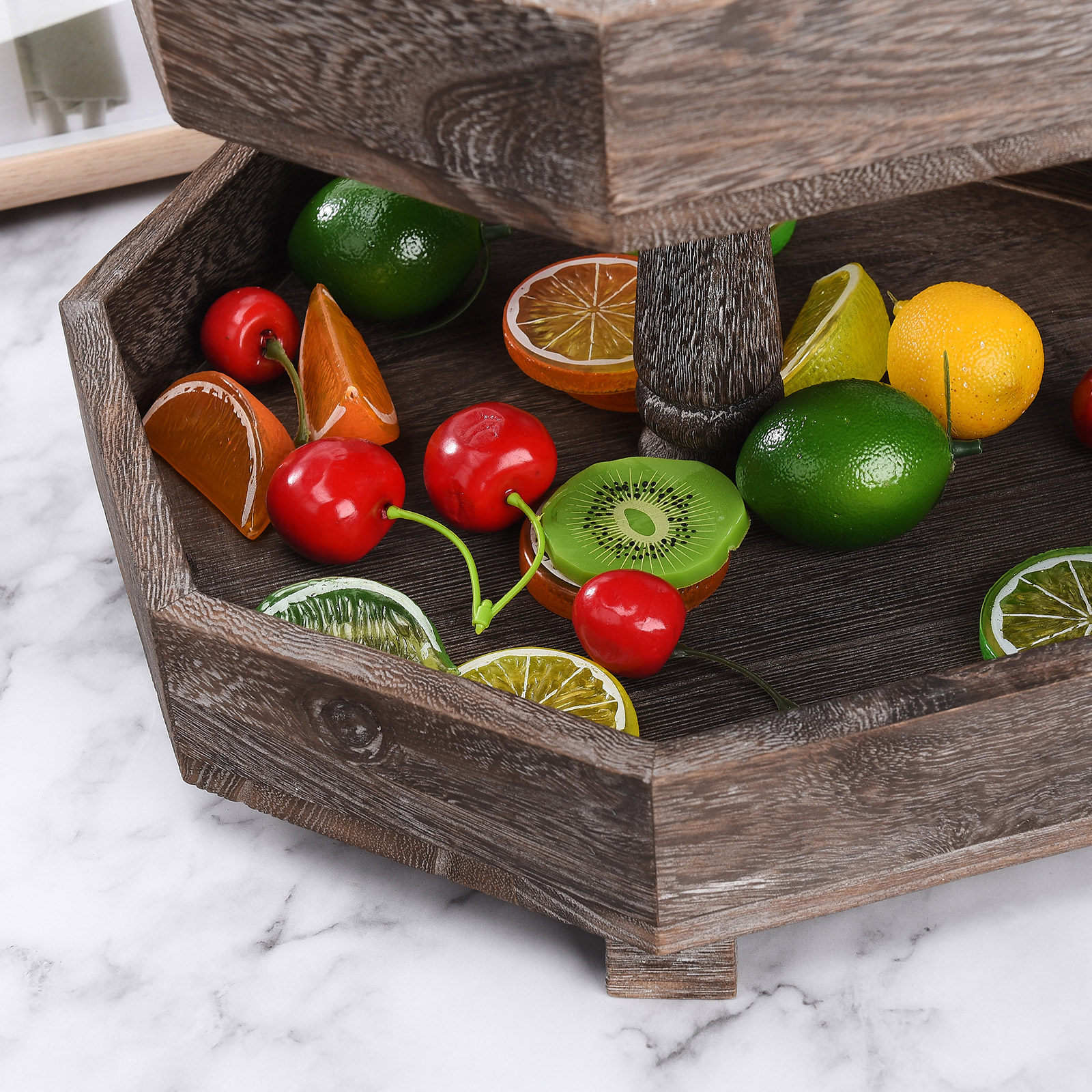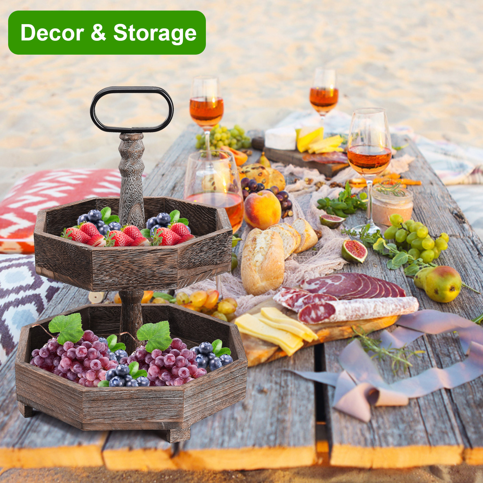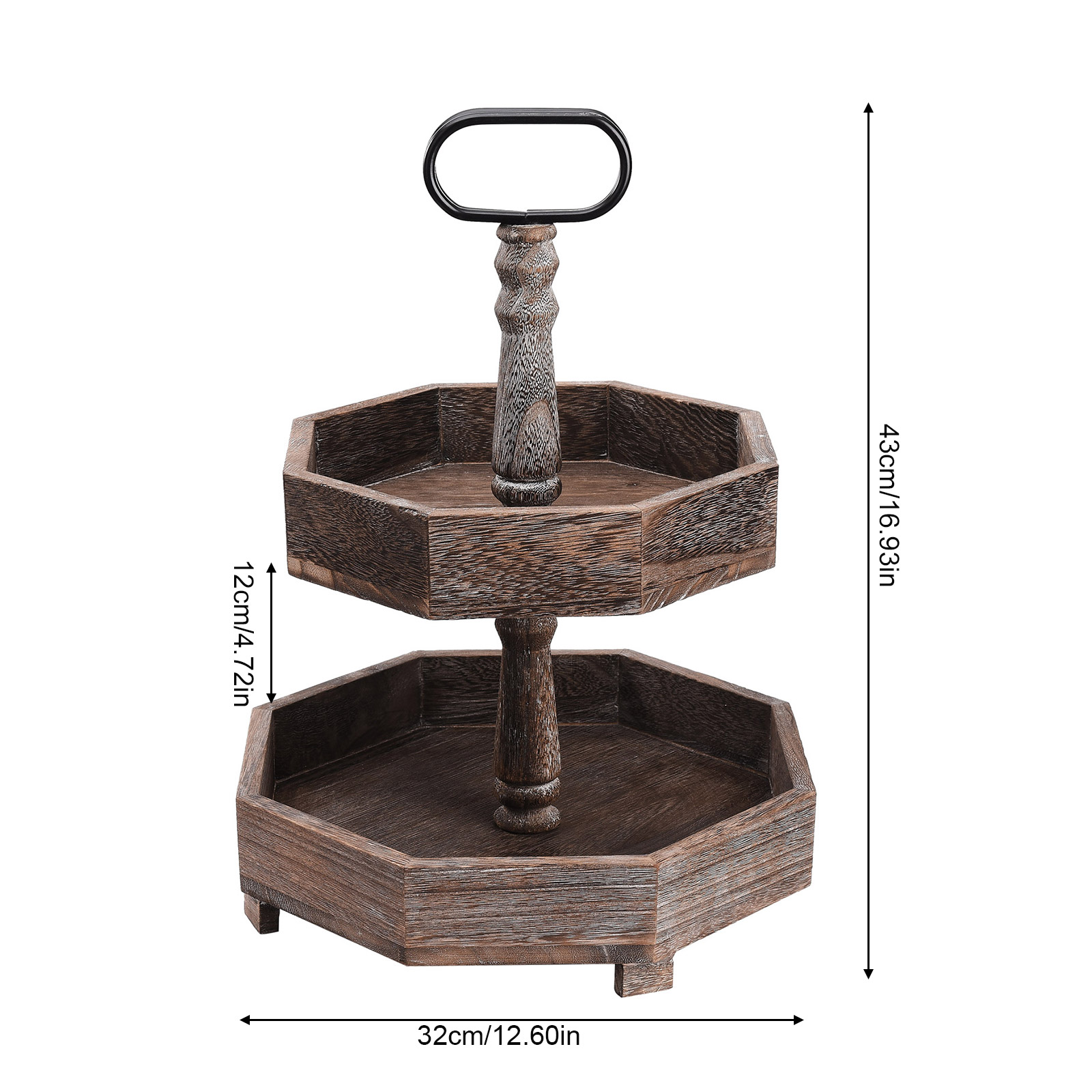 1. Декор и хранение: двухуровневый многоярусный многослойный поднос в деревенском стиле изготовлен из огорченного дерева, этот деревенский многоуровневый поднос можно разместить на кухне, прихожей, гостиной, журнальном столике и т. д. Этот деревянный поднос является прекрасным украшением и практичным инструментом для хранения.