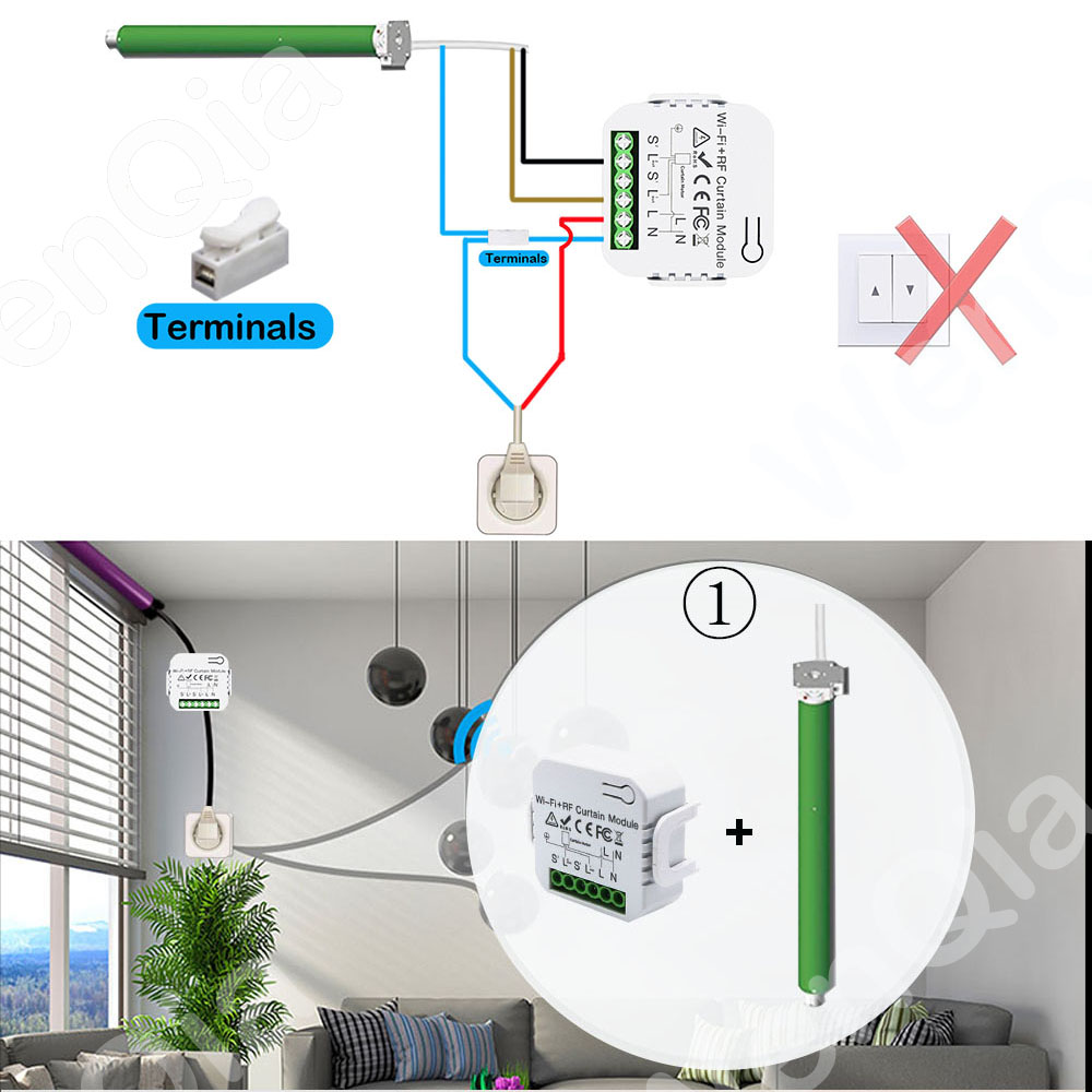 Use this curtain control module: let your electric curtain or electric projection cloth realize Wall switch control, mobile phone remote control, voice control, wireless remote control immediately. Make your life smarter.
