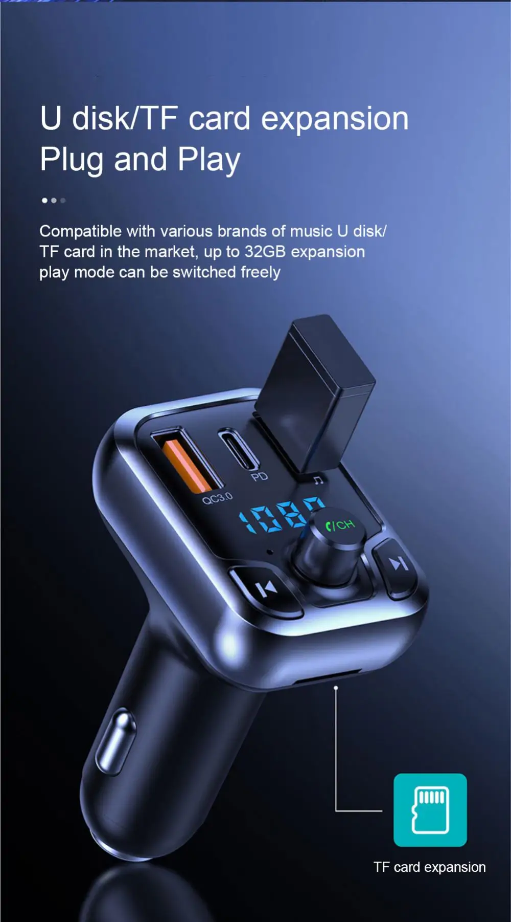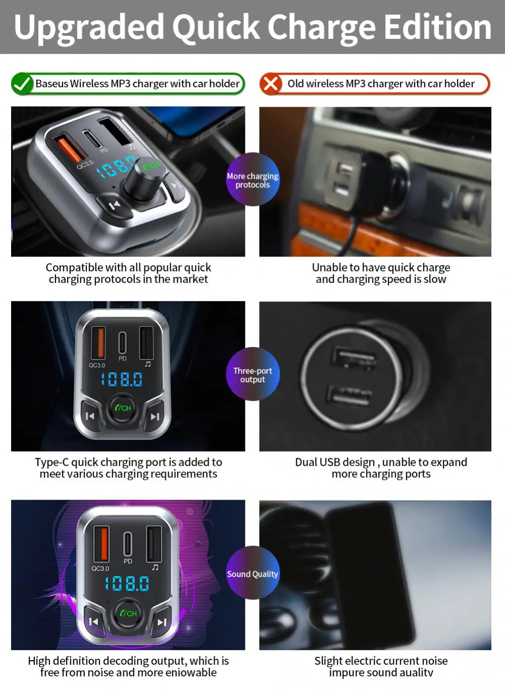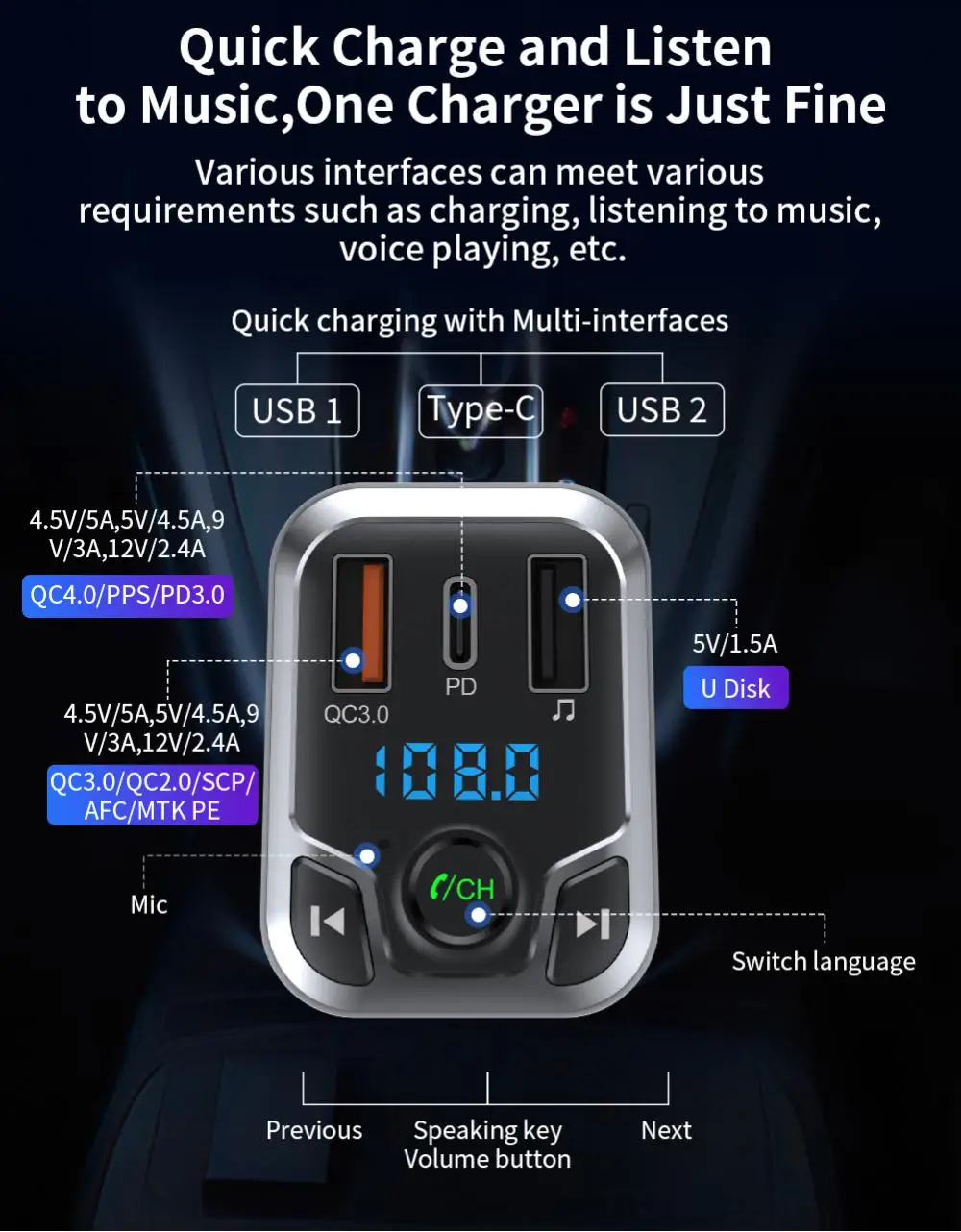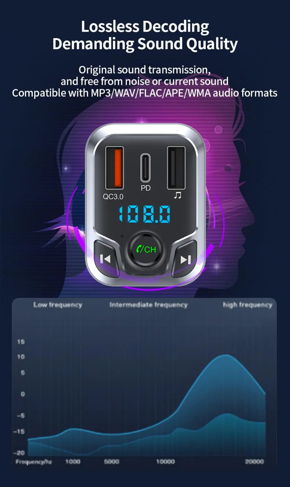 -Автомобильный bluetooth-плеер, качество звука без потерь, быстрая зарядка