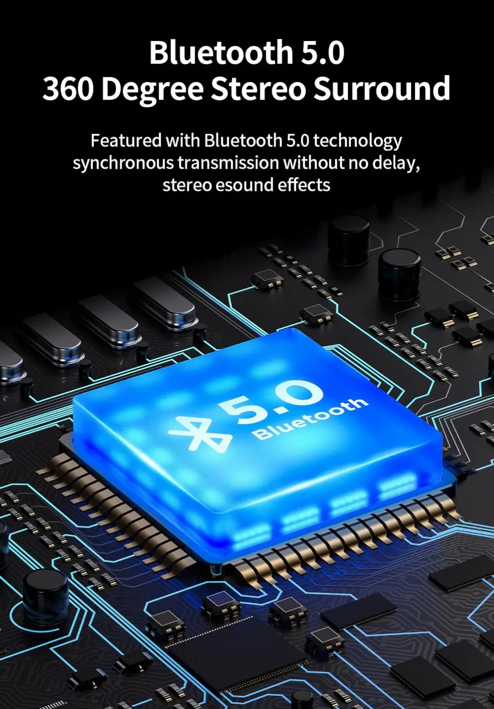 -Smart Bluetooth 5,0, совместим с системами Android и i0s, обработка фонового шума делает воспроизведение музыки и мобильный телефон более четкими