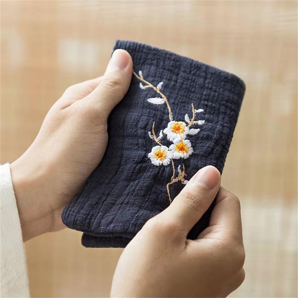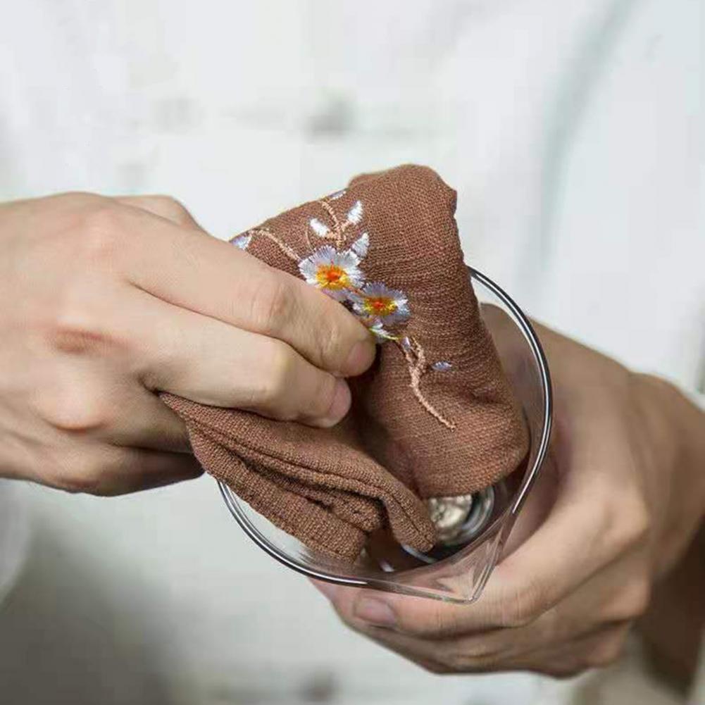 Tea Towel Embroidery Flower Soft Vintage Lightweight Easy to Clean Cotton Washable Tea Bowl Teapot Cleaning Towel Household Supplies