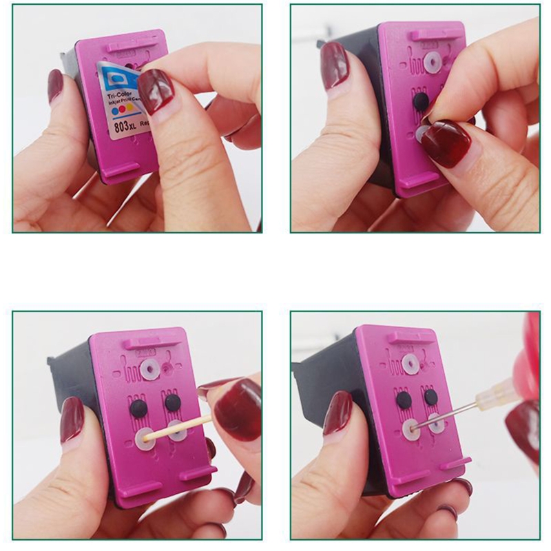 1. Некоторые чернильные картриджи с отверстиями для прямого добавления чернил, некоторые чернильные картриджи без отверстий. Если нет отверстий, есть инструменты в нашем чернильном ящике, чтобы легко просверлить отверстия.