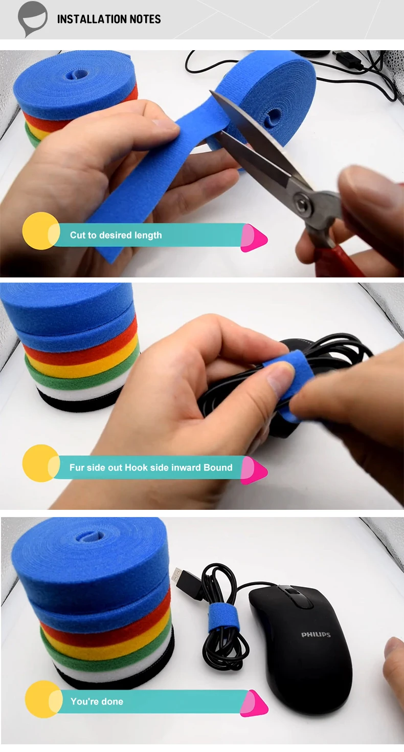 【Гибкость и versatity】ремни изготовлены из 100% прочных нейлоновых клейких материалов. Добавьте, удалите или Отрегулируйте кабели и шнуры, когда вам нужно.